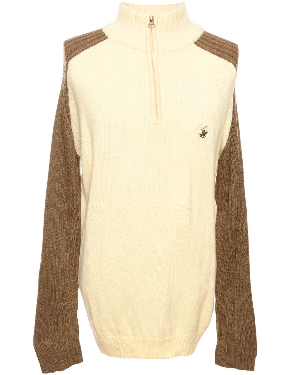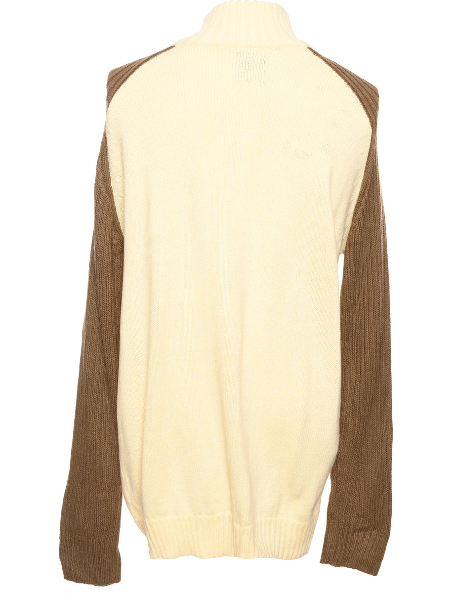 Vintage Y2K Quarter Zip Pale Yellow Jumper - L