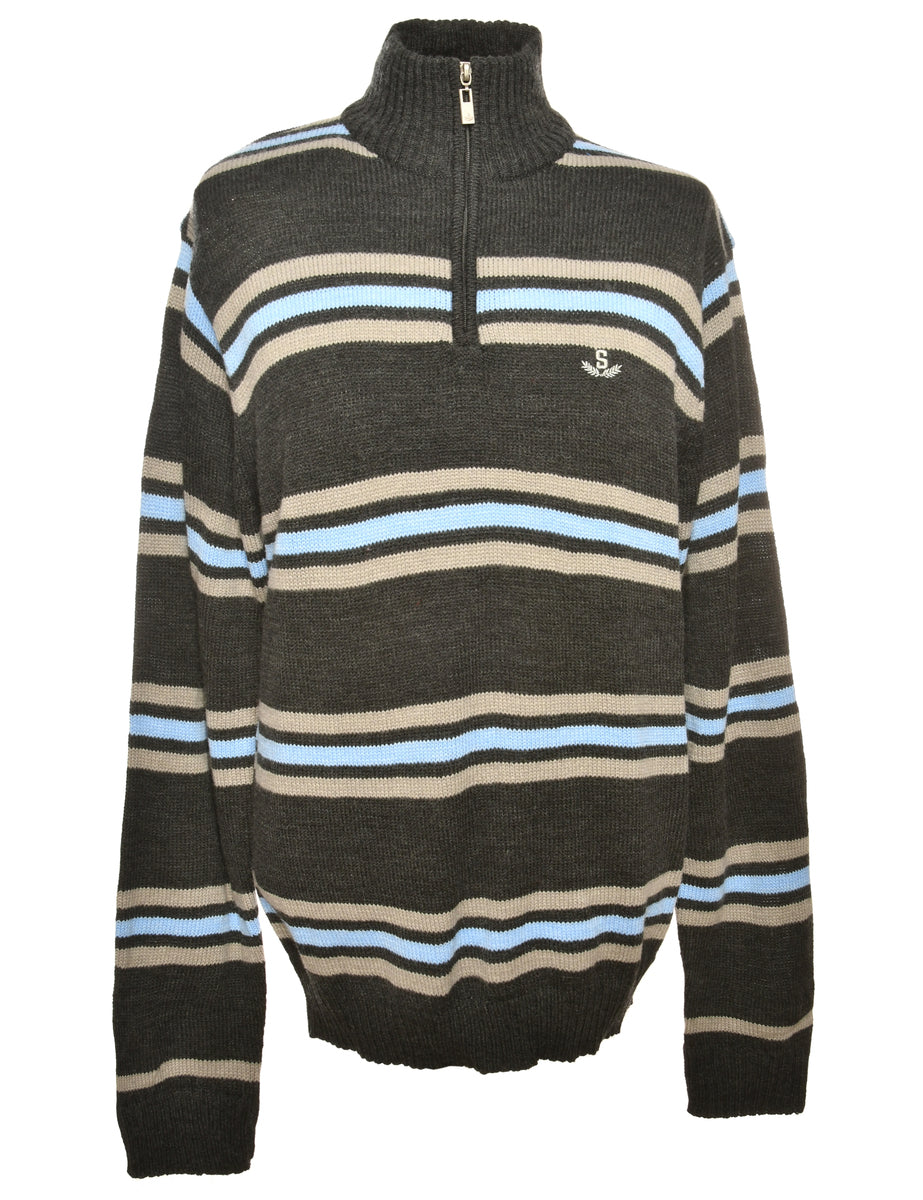 Vintage Y2K Quarter Zip Striped Jumper - L
