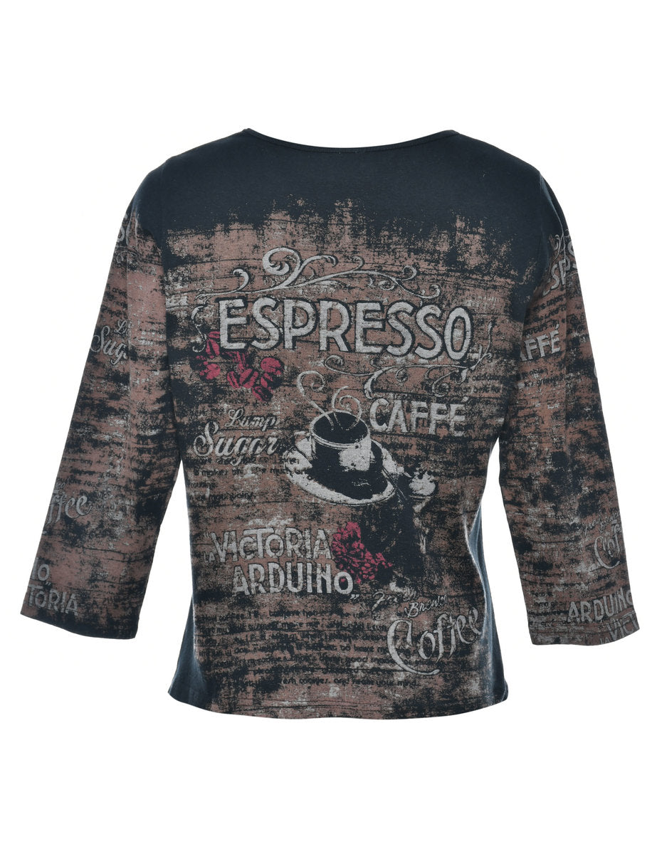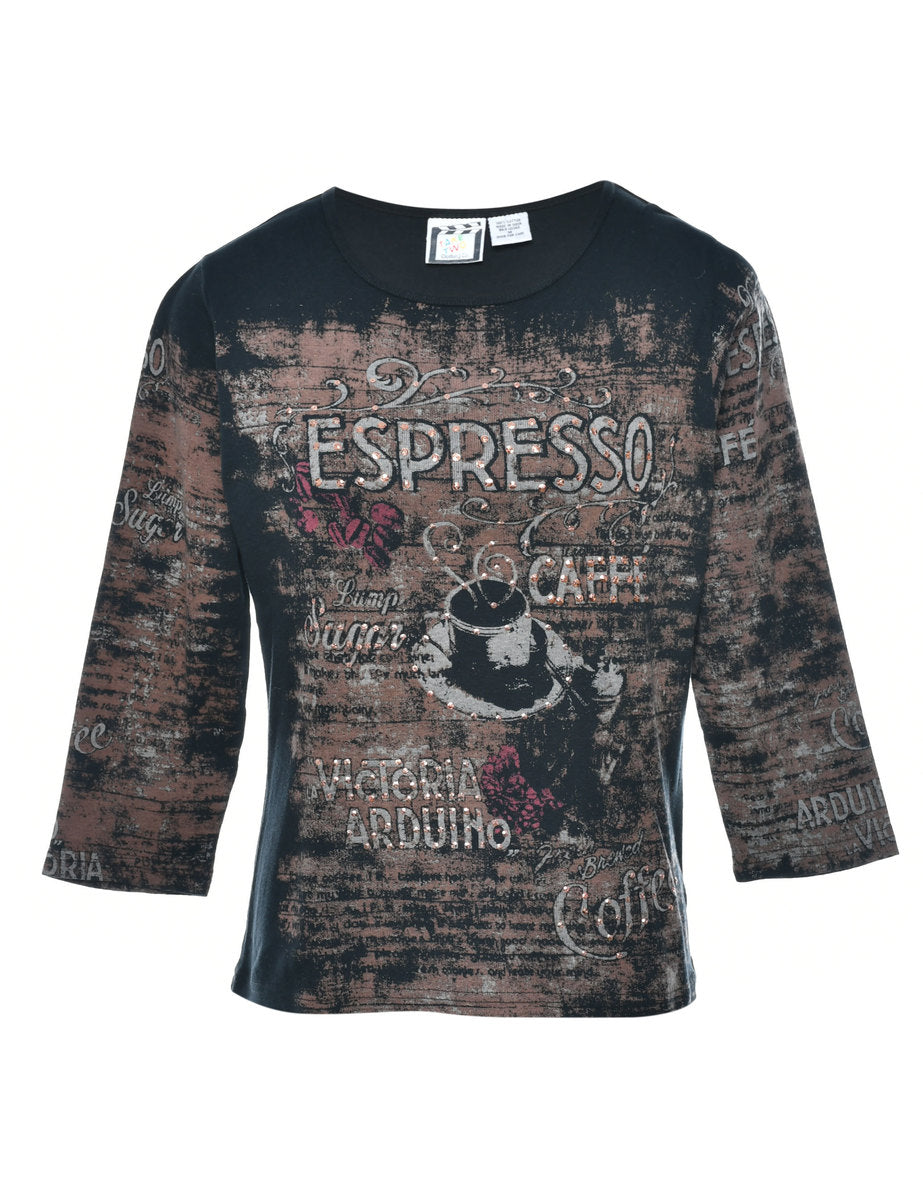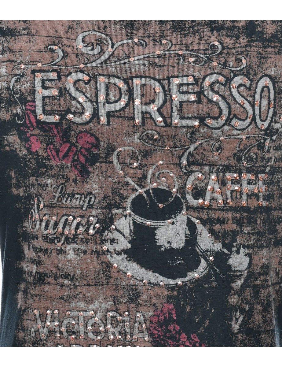 Vintage Sequins Printed Y2K Espresso Baby Tee - M