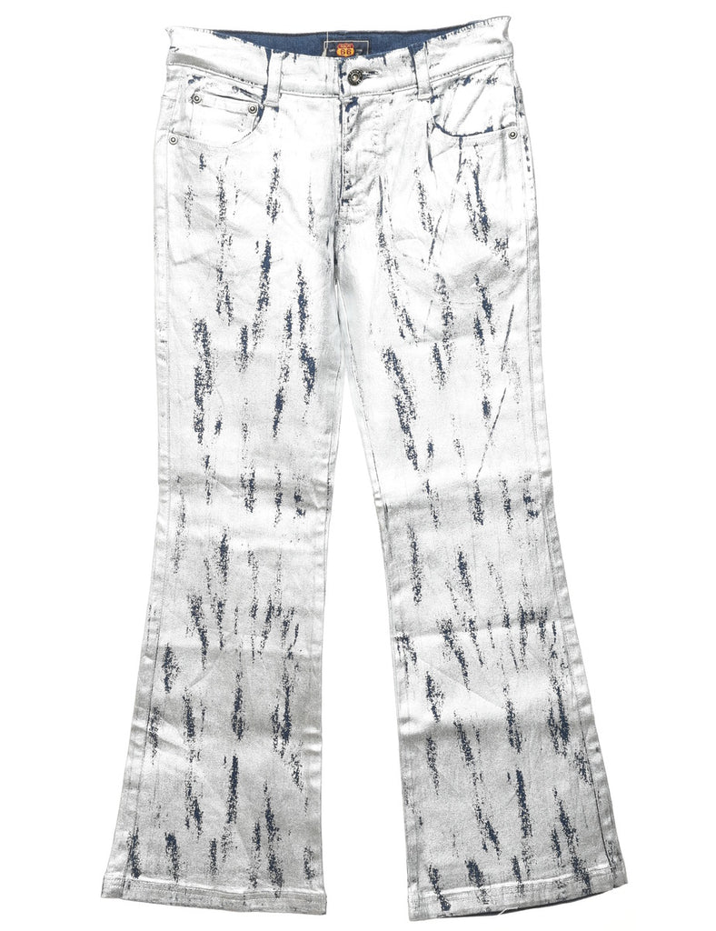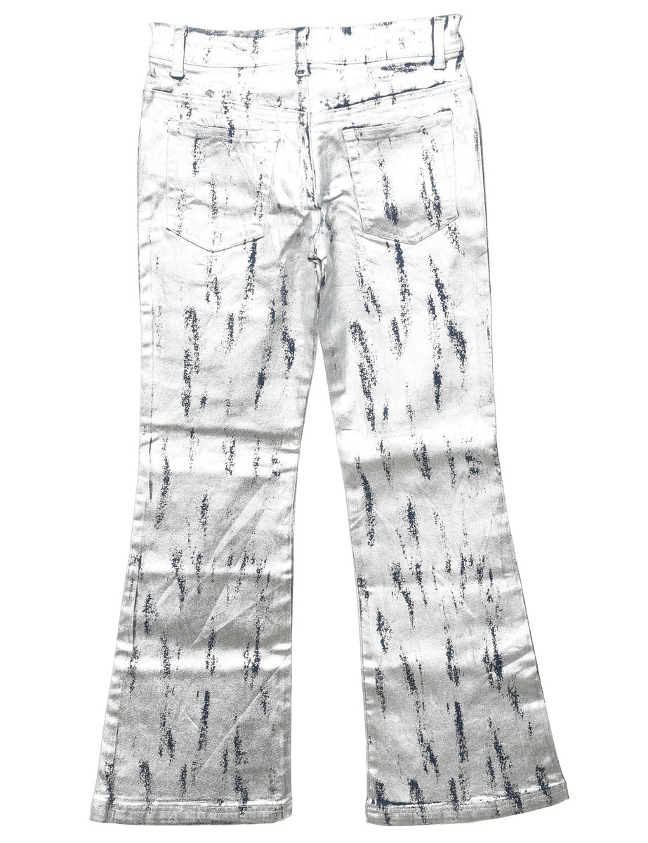 Silver Patterned Y2K Bootcut Jeans - W26 L27