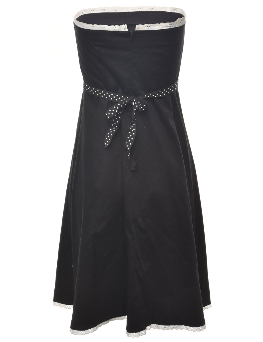 Strapless dress. Comes in black with back tie and lace trim.