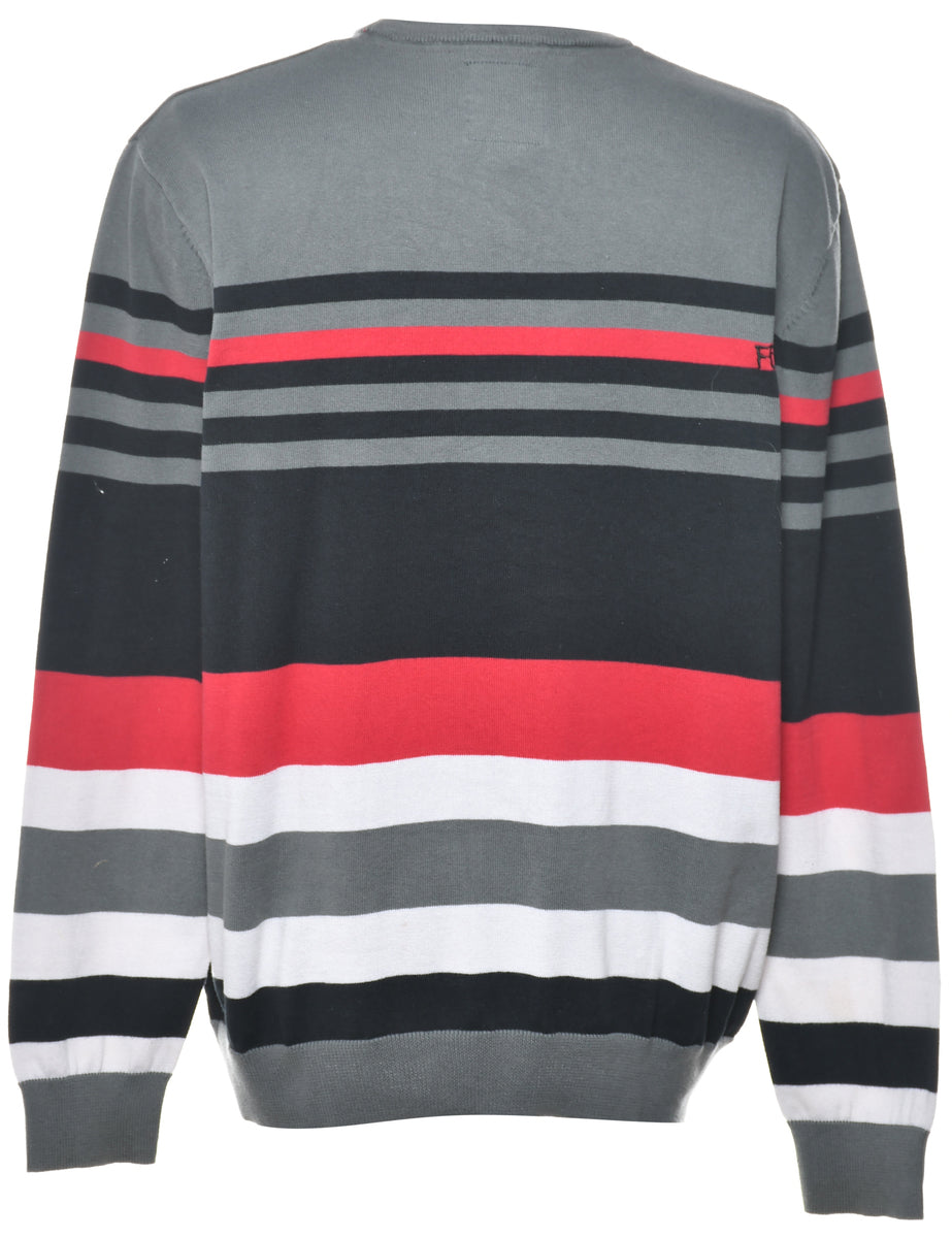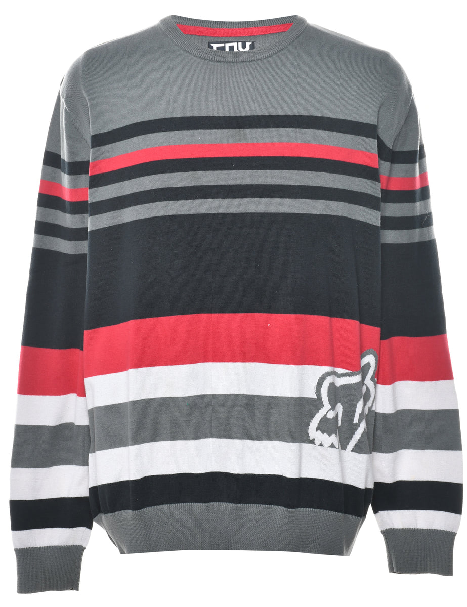 Vintage Y2K FOX Striped Pattern Jumper - XL