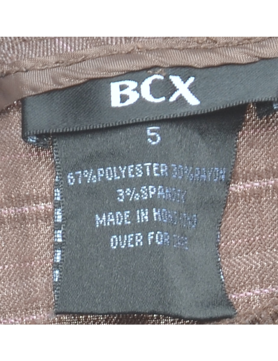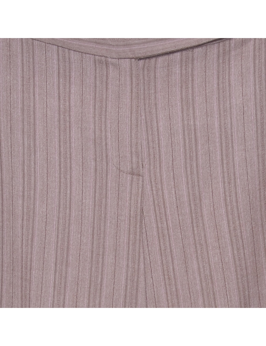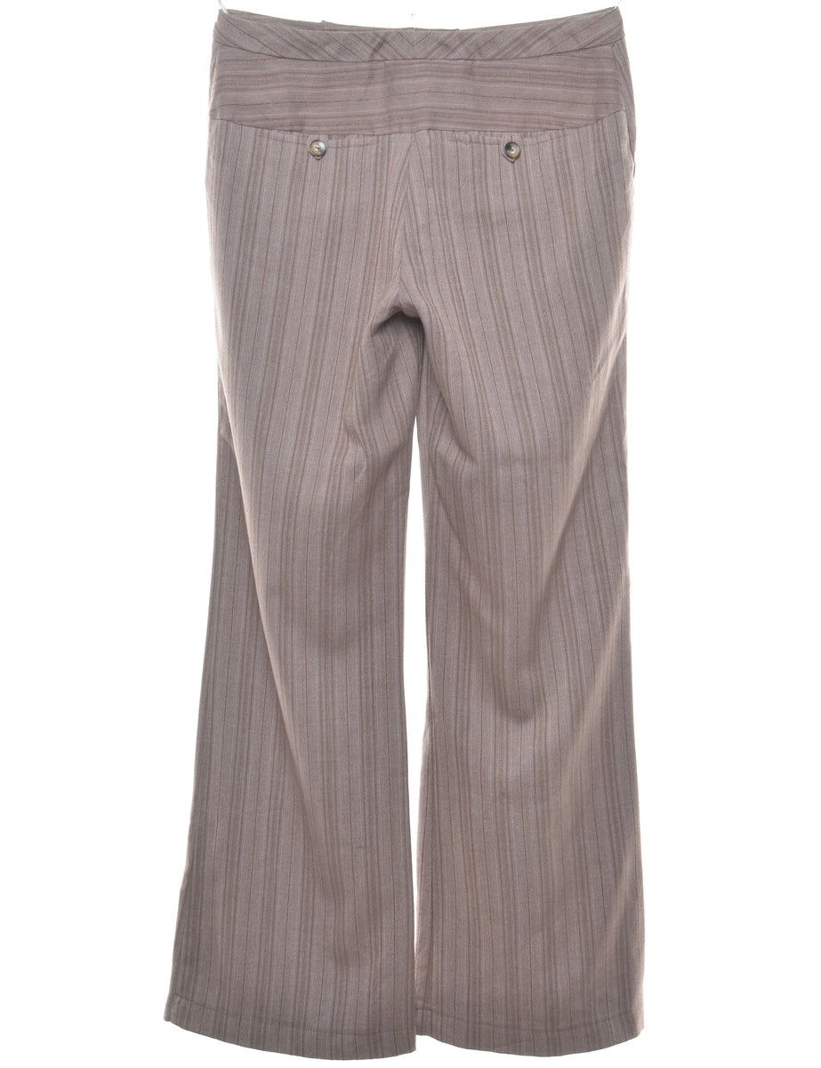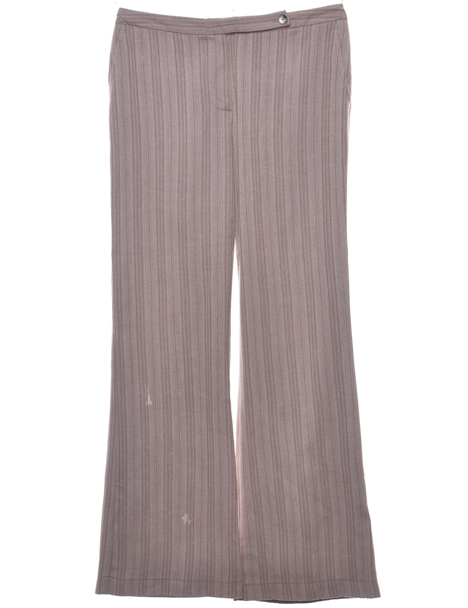 Flared leg trousers with striped pattern. Comes in brown with two pockets.