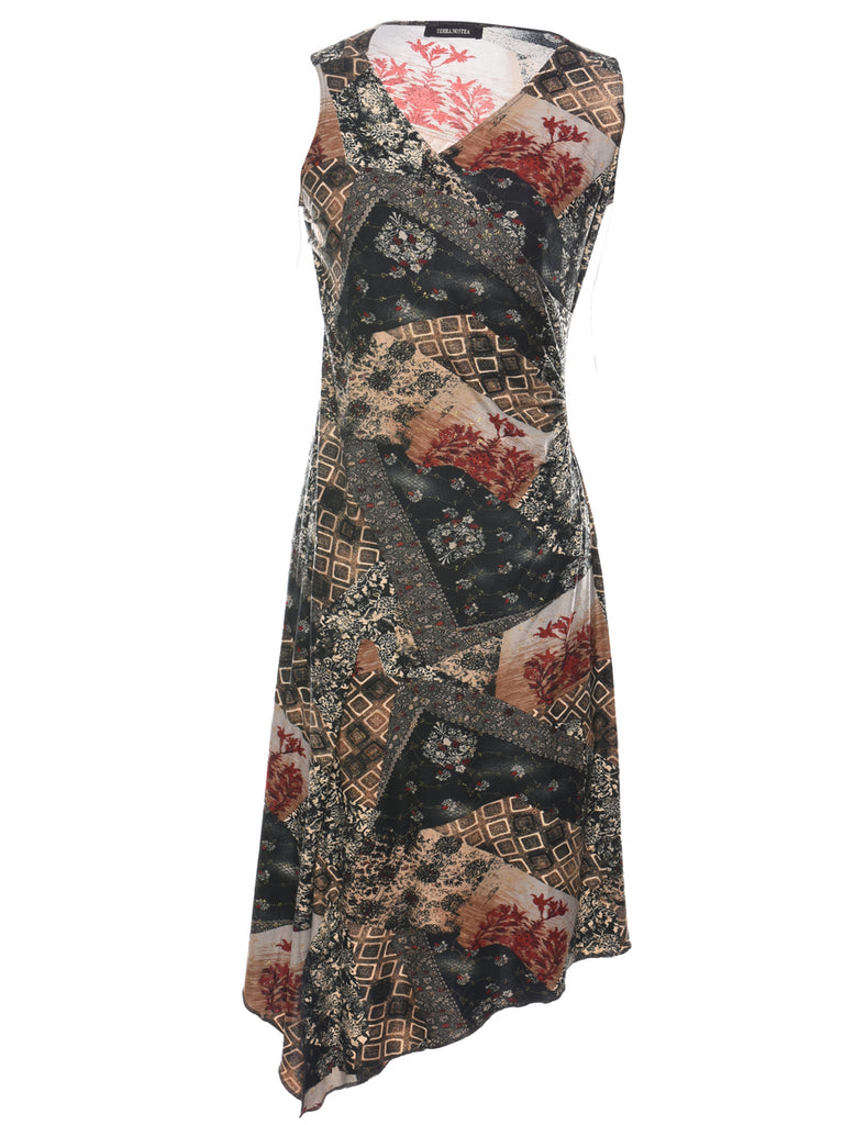 Floral print dress. Comes in multi-colour with a cross-over front and an asymmetric hem.
