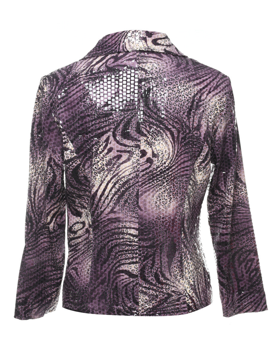 Vintage Zip Front Purple Zebra Print Y2K Shiny Jacket - M