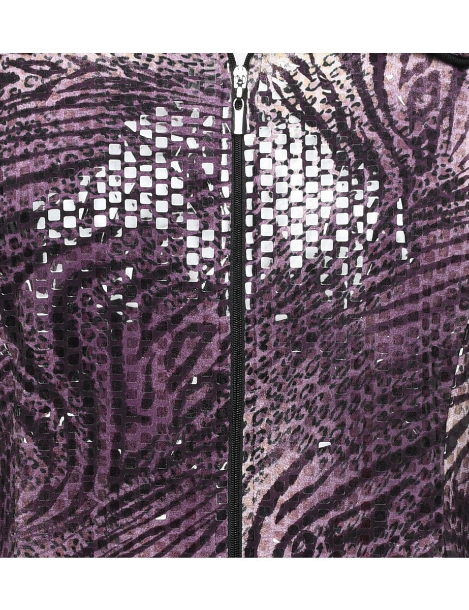 Zip front evening jacket. Comes in purple with removable shoulder pads.
