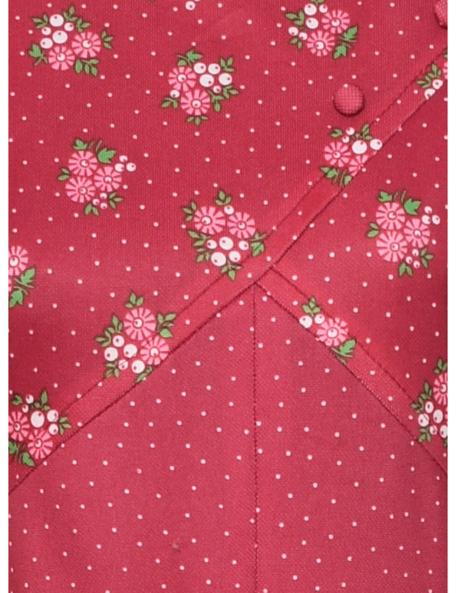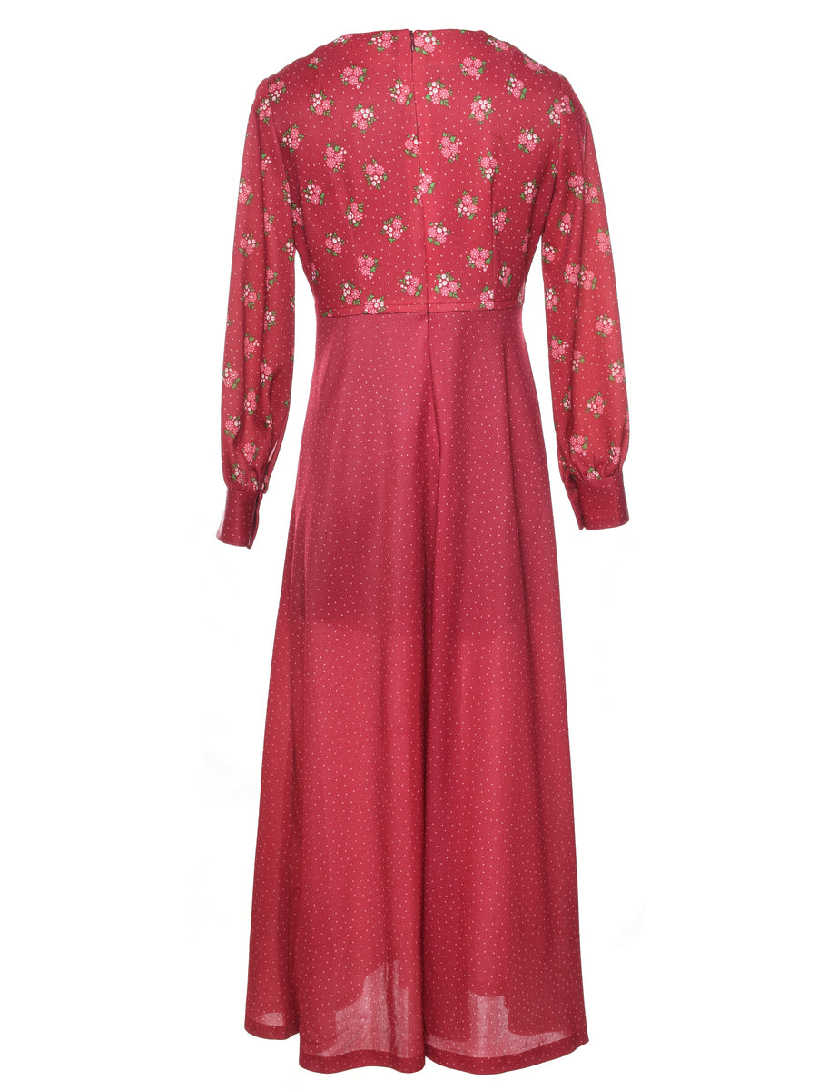 Vintage 1970s Pink & Green Floral Print Maxi Dress - M