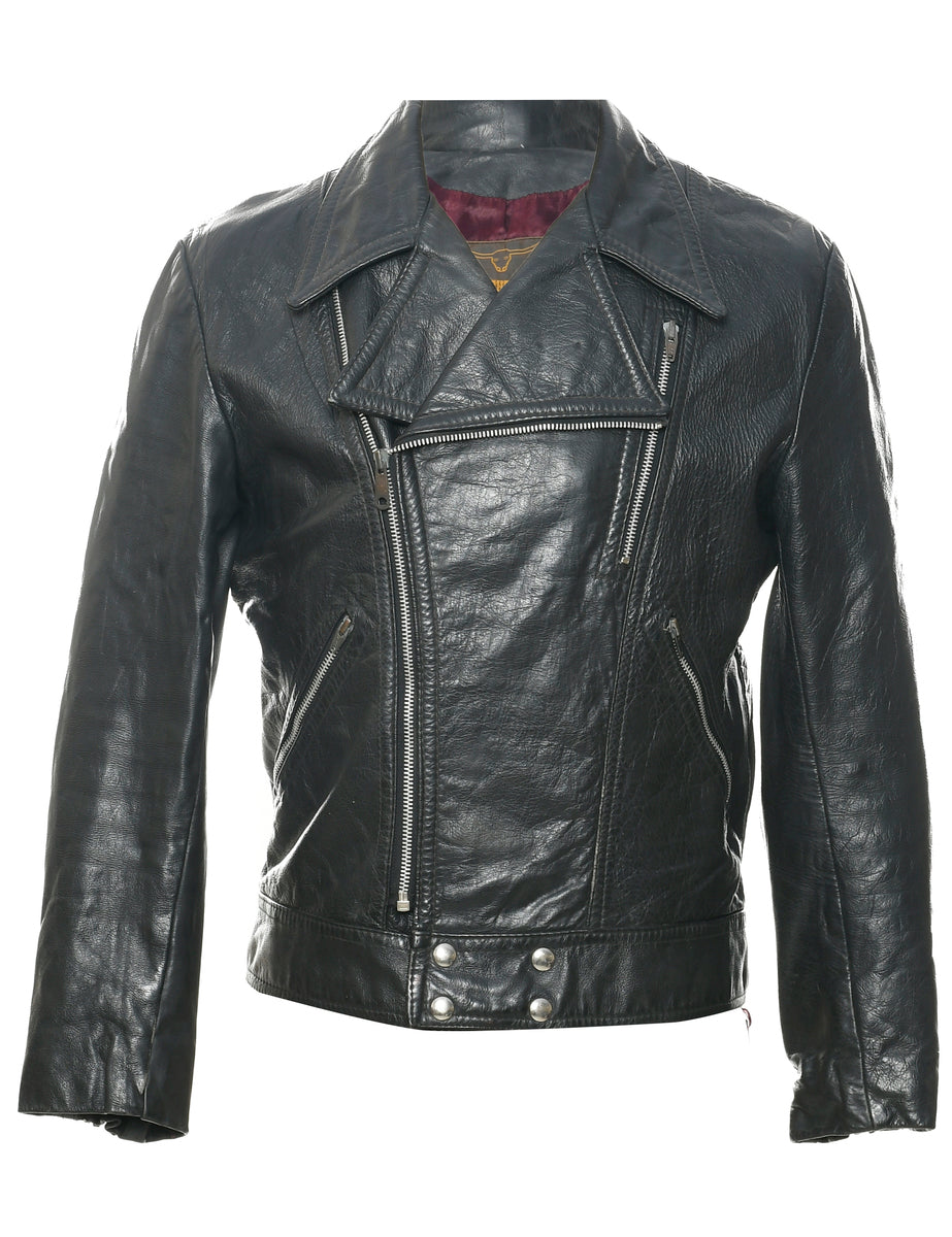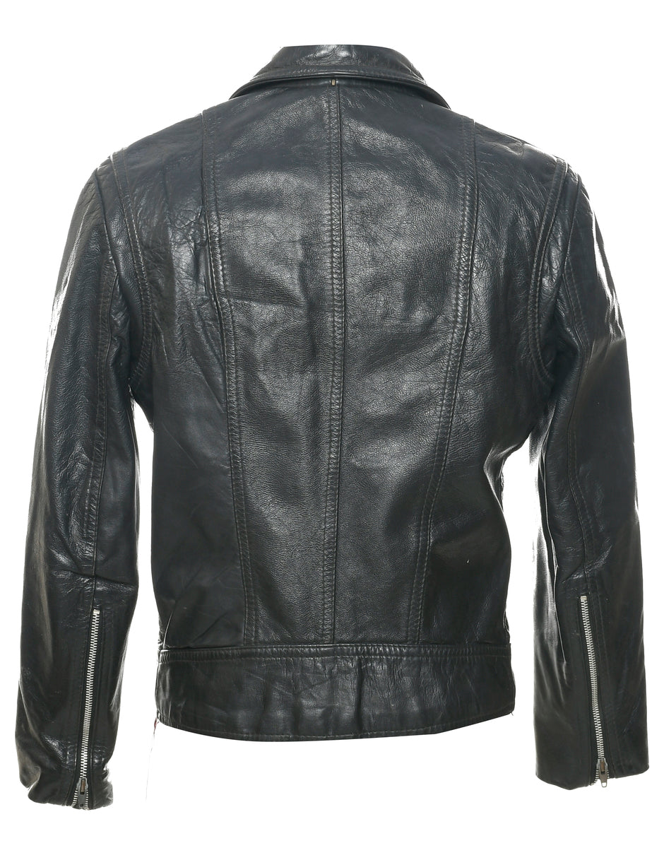 Vintage 1980s Biker Style Leather Motorcyle Jacket - L