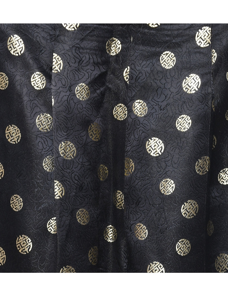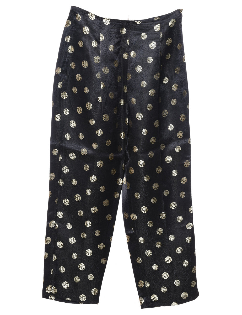 Vintage 1980s Jacquard Pattern Black Trousers - W28 L27