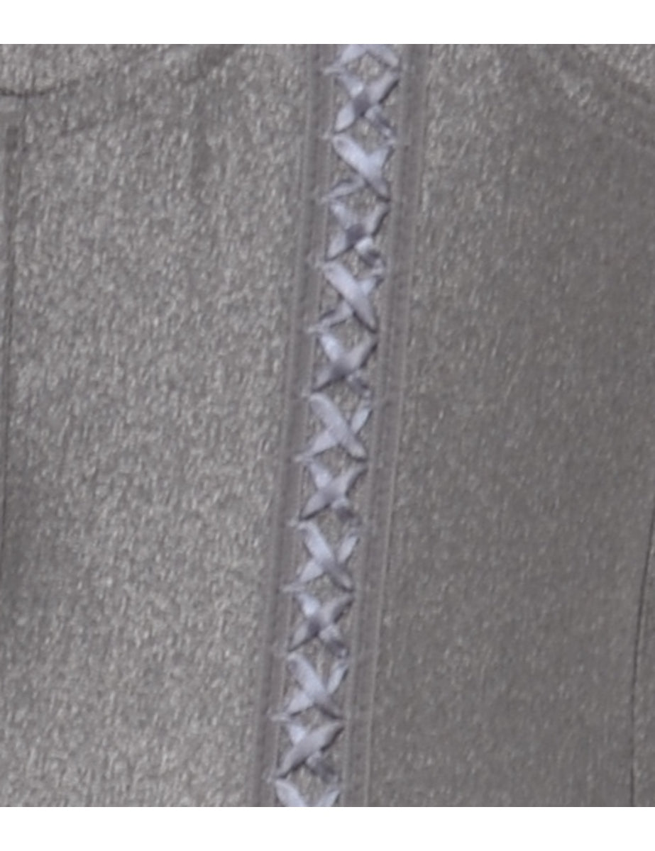 Vintage 1990s Grey One-piece Metallic Lace Up Bodysuit - M