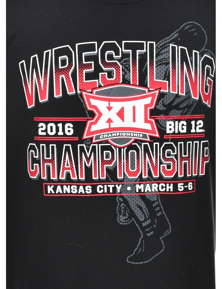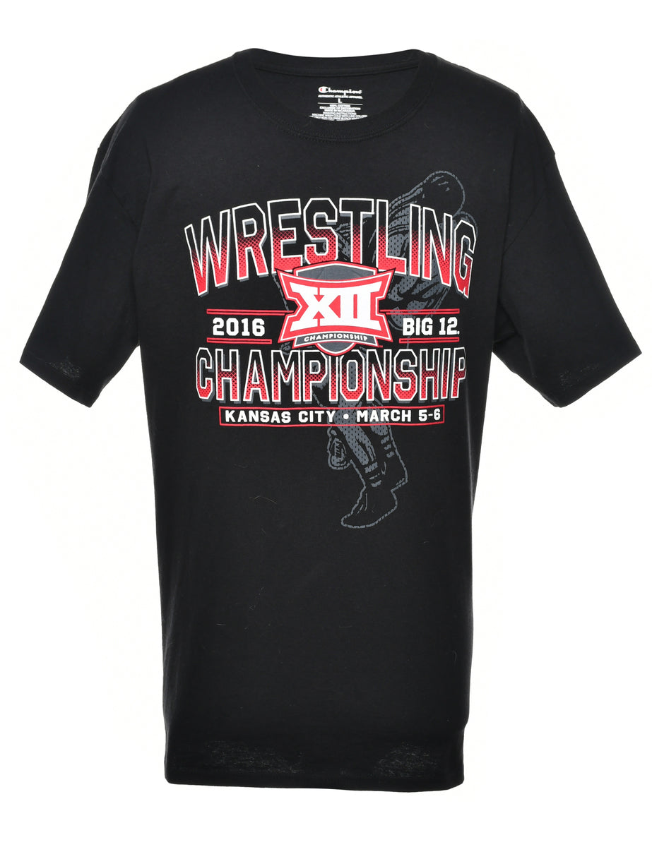 Champion Kansas city t-shirt in black with wrestling print.