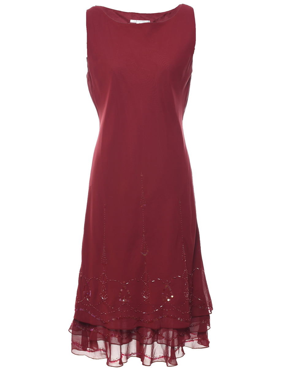 Beaded evening dress. Comes in maroon with a round neck and full lining.