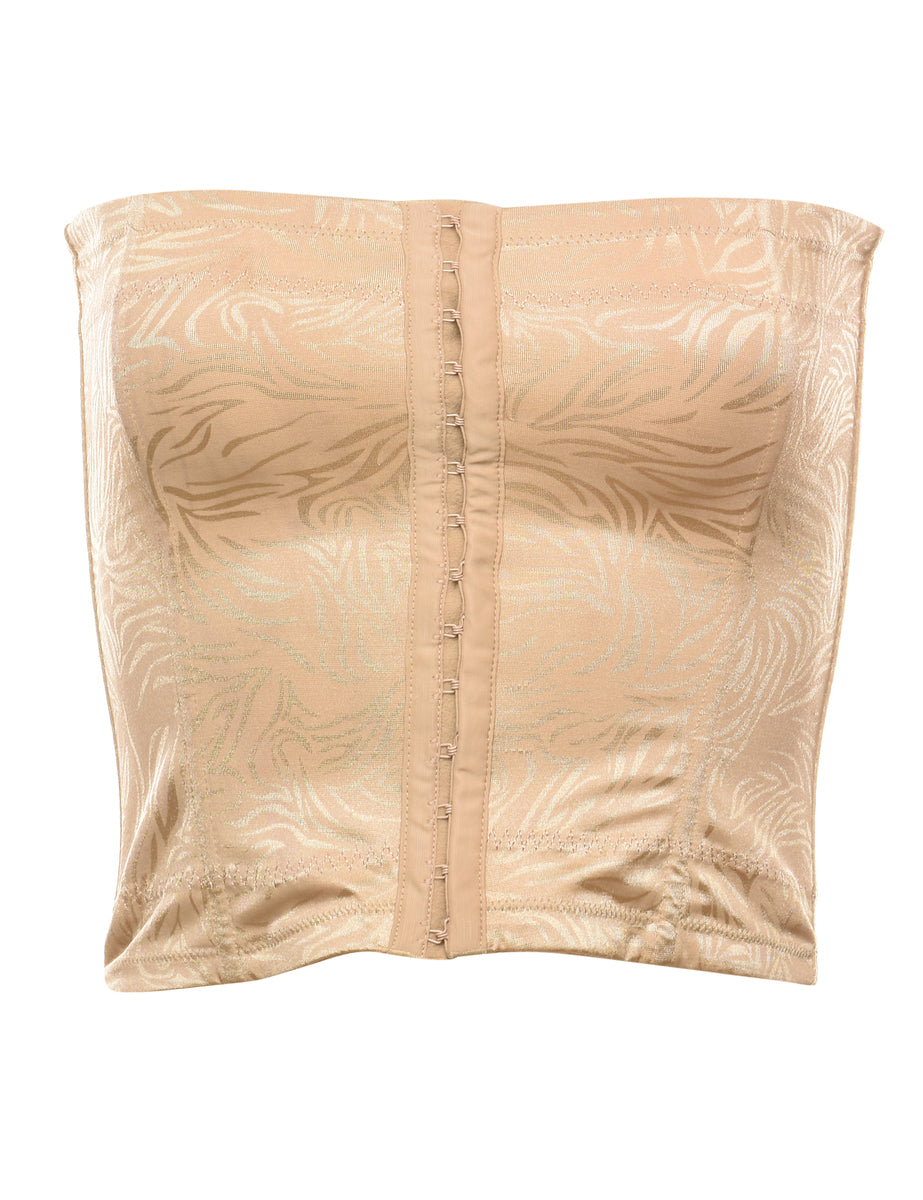Classic beige leafy print corset with a boned bodice.