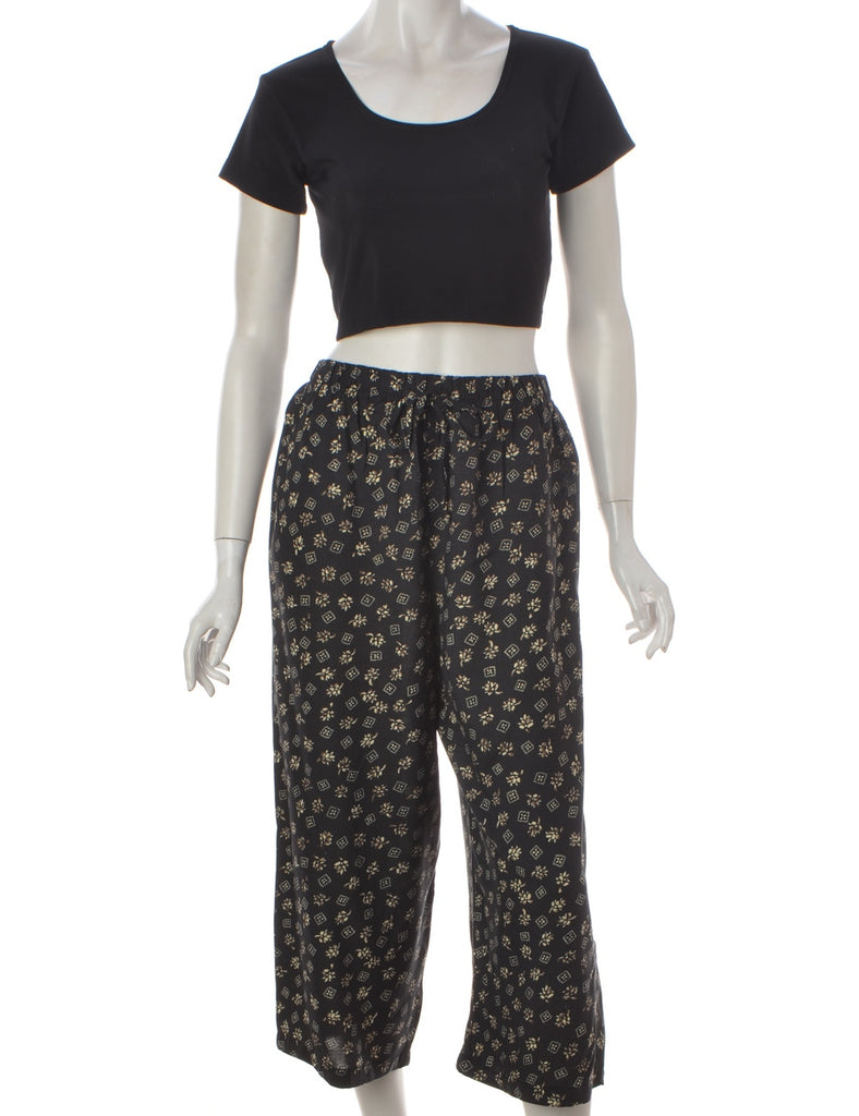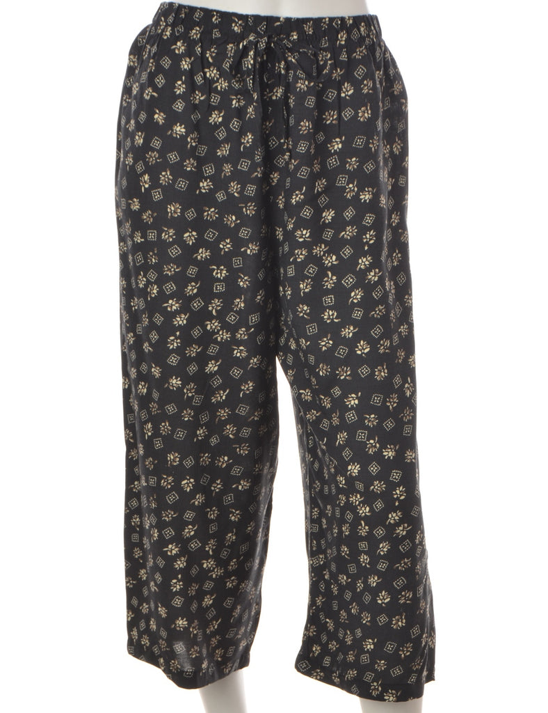 Beyond Retro Label floral summer culotte in black with pockets and a drawstring waist.