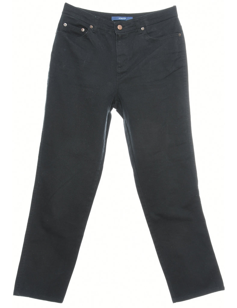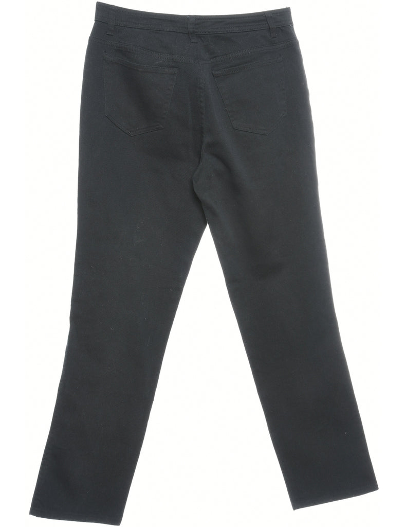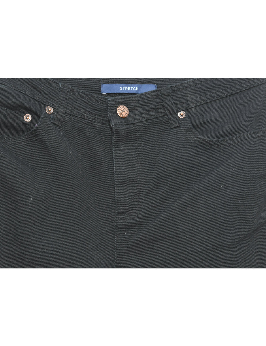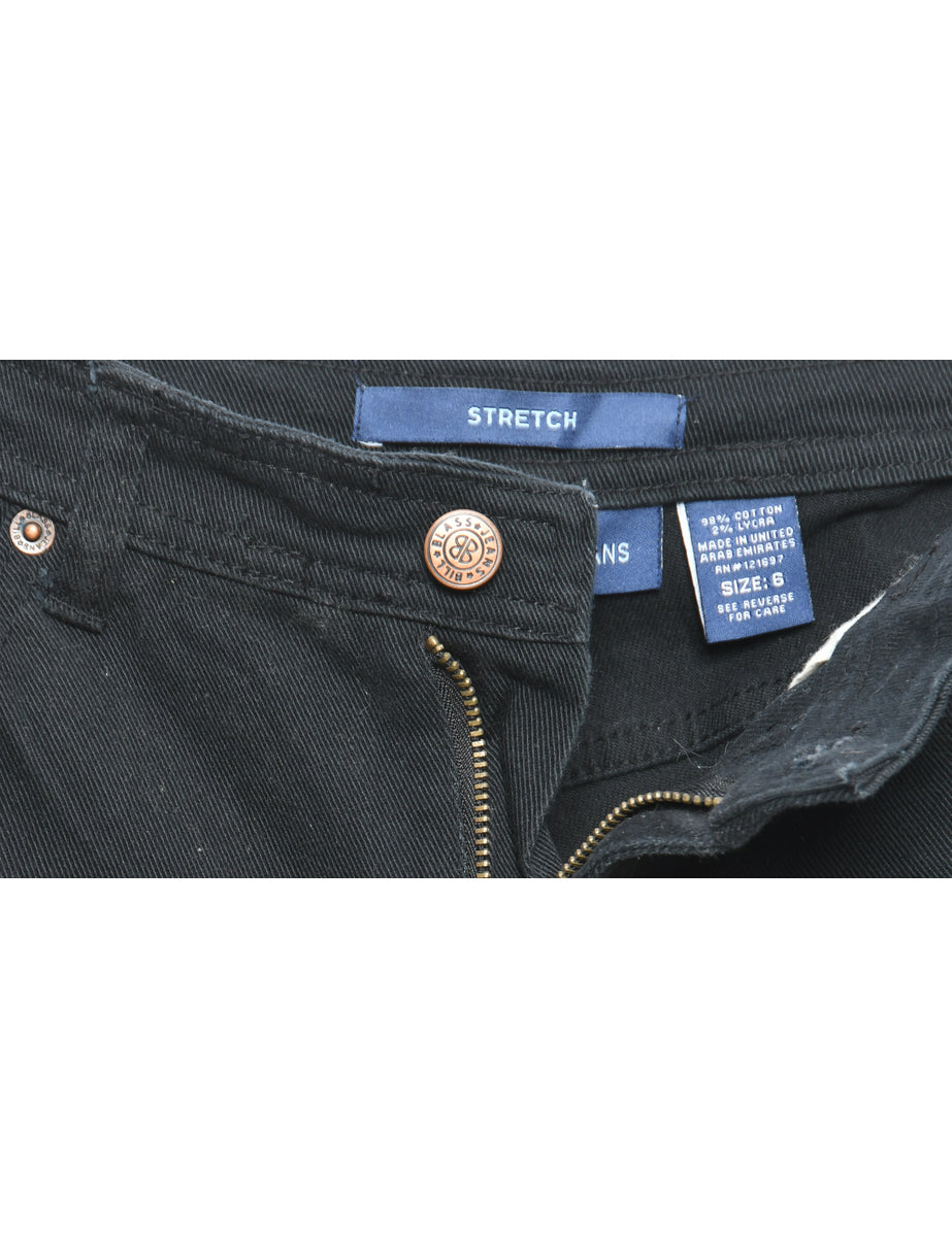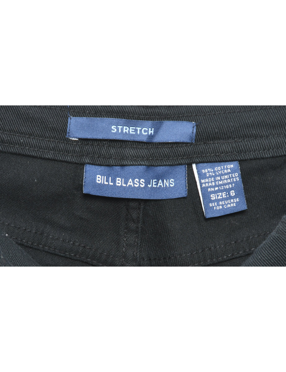 Bill Blass zip front straight fit jeans comes in black with multiple pockets.