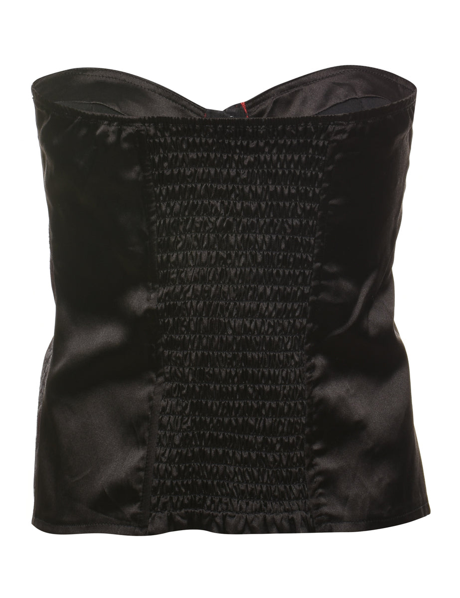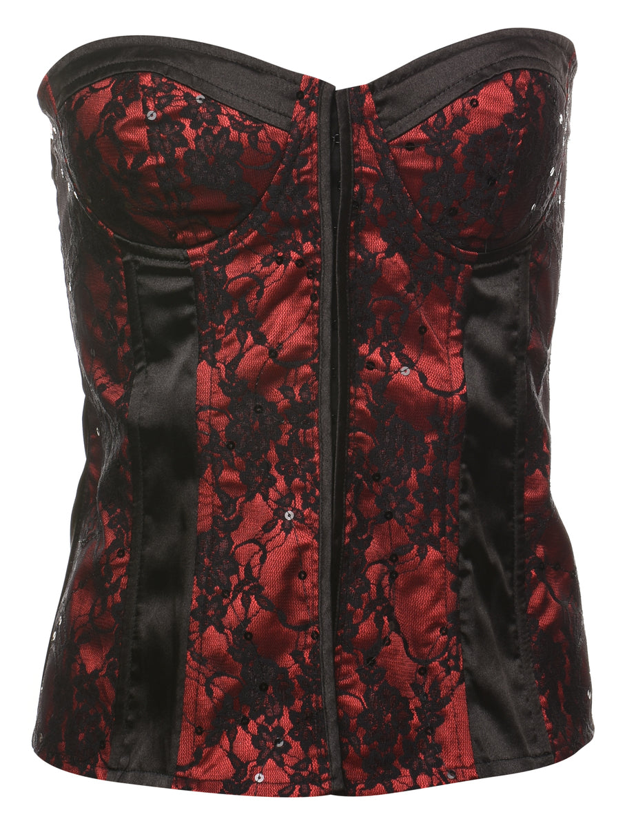 Vintage Black & Red Sparkly Lace Corset - S
