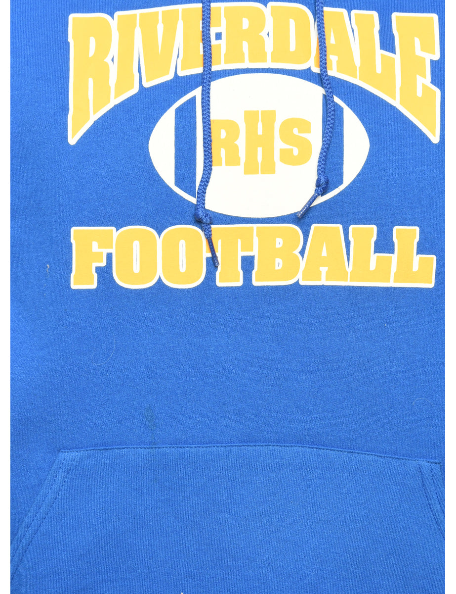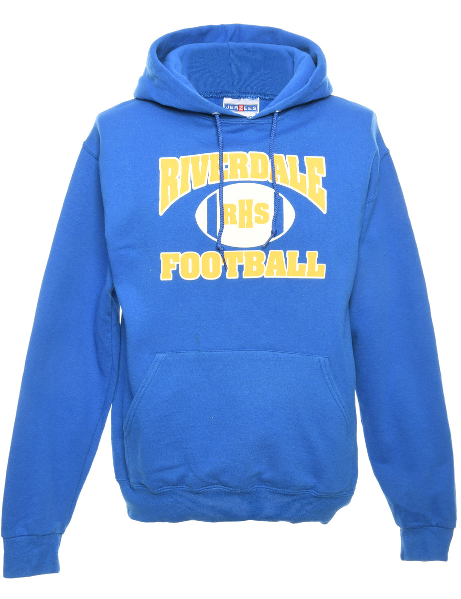 Football hooded sports sweatshirt comes in blue with a pocket.