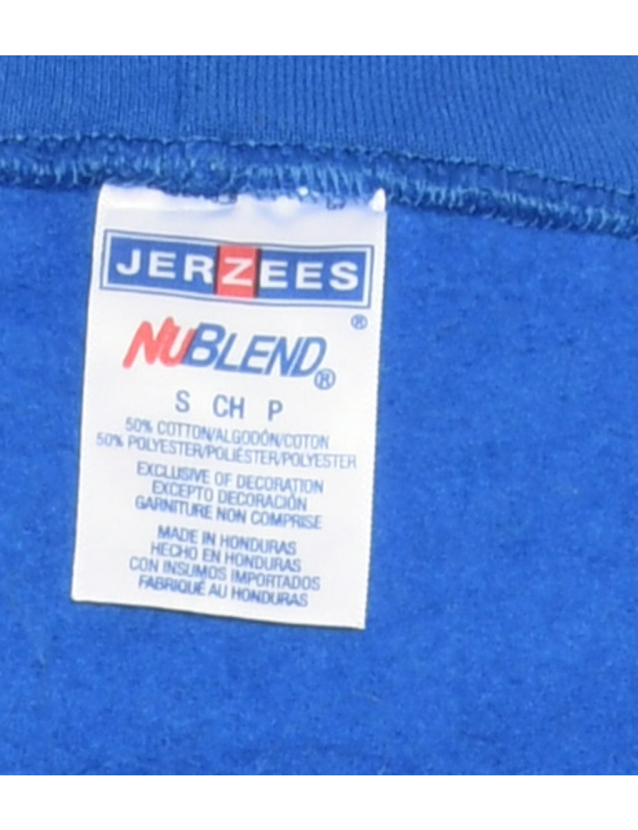 Vintage Blue Jerzees Hooded Sports Sweatshirt - S