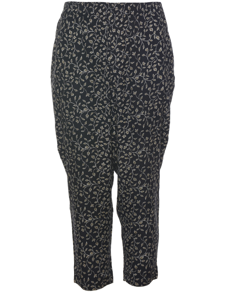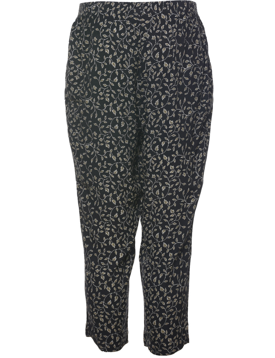 Briggs floral print printed trousers in black with multiple pockets and an elasticized waist.
