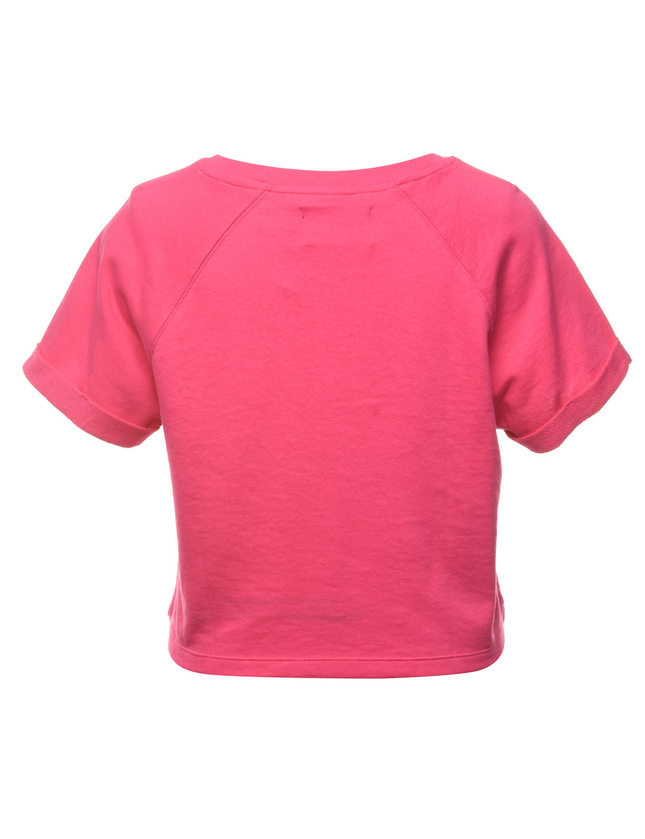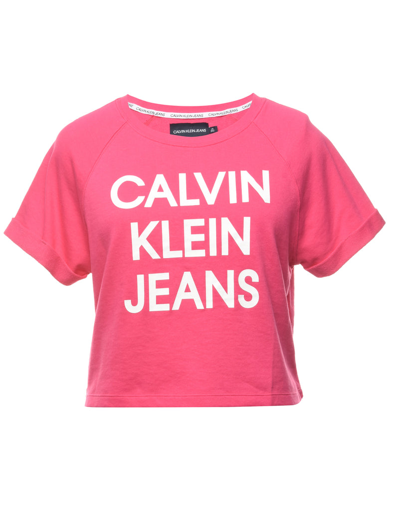 Calvin Klein printed sweatshirt comes in pink with raglan sleeves.