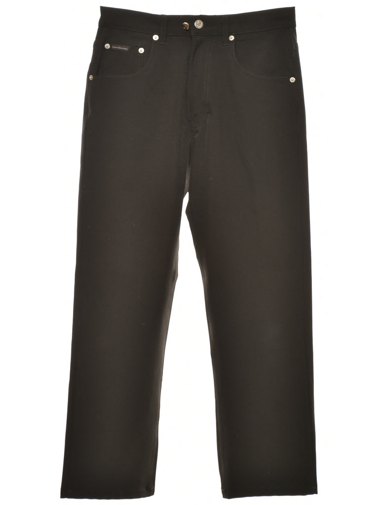 Classic Calvin Klein trousers in black with belt loops and pockets.
