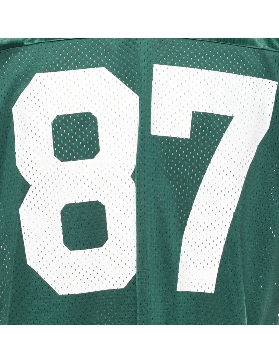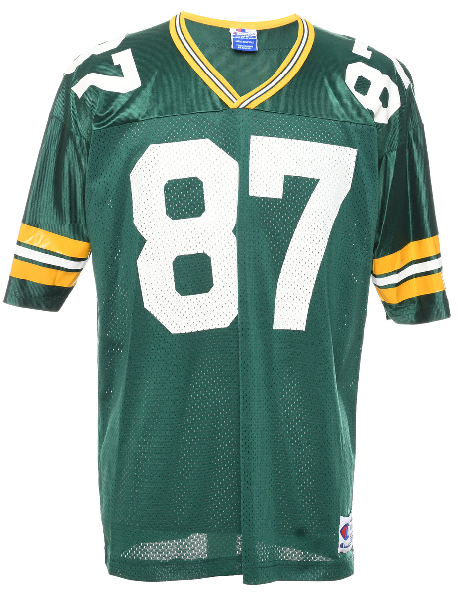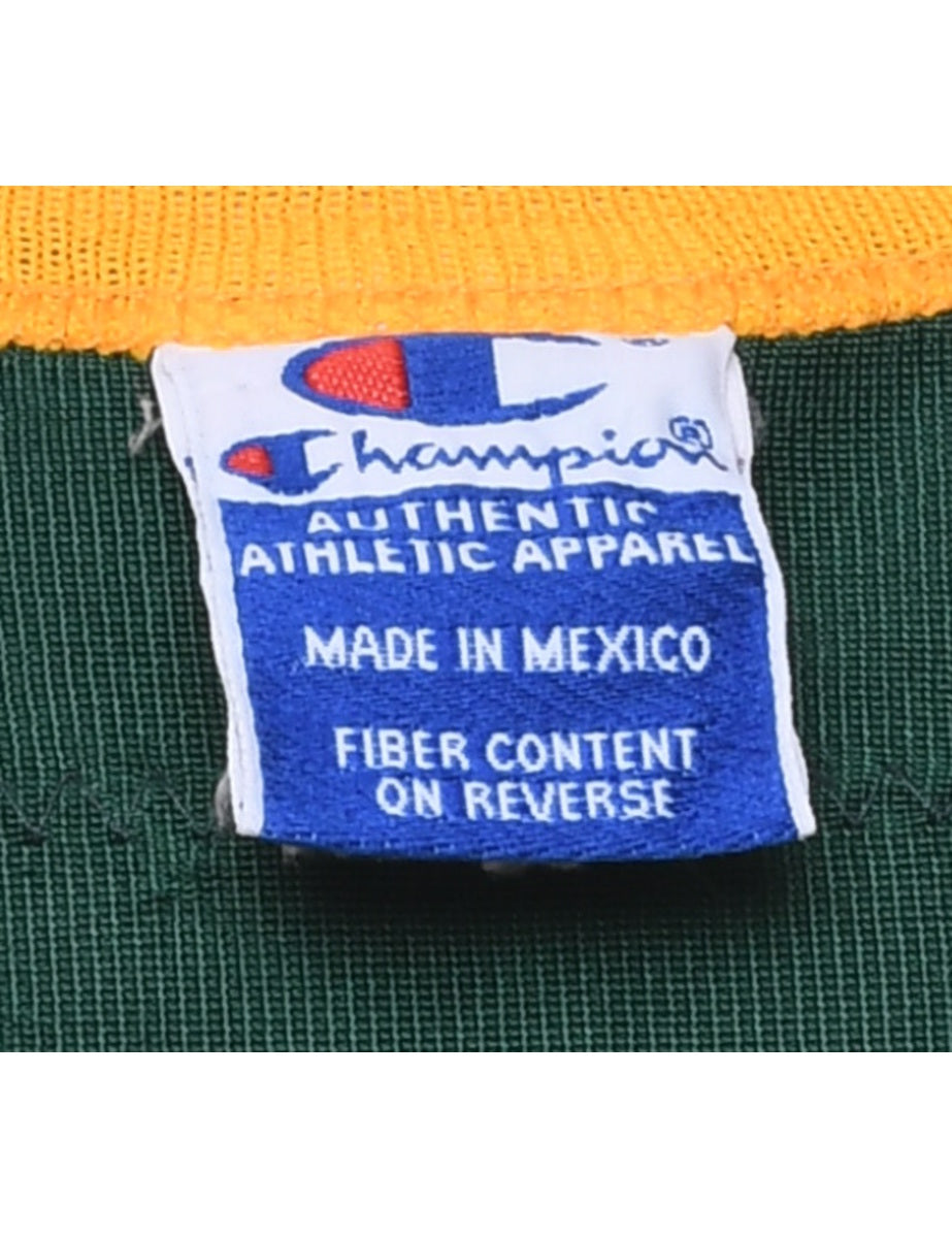 Champion mesh printed t-shirt comes in green with a v-neck and contrasting trim.