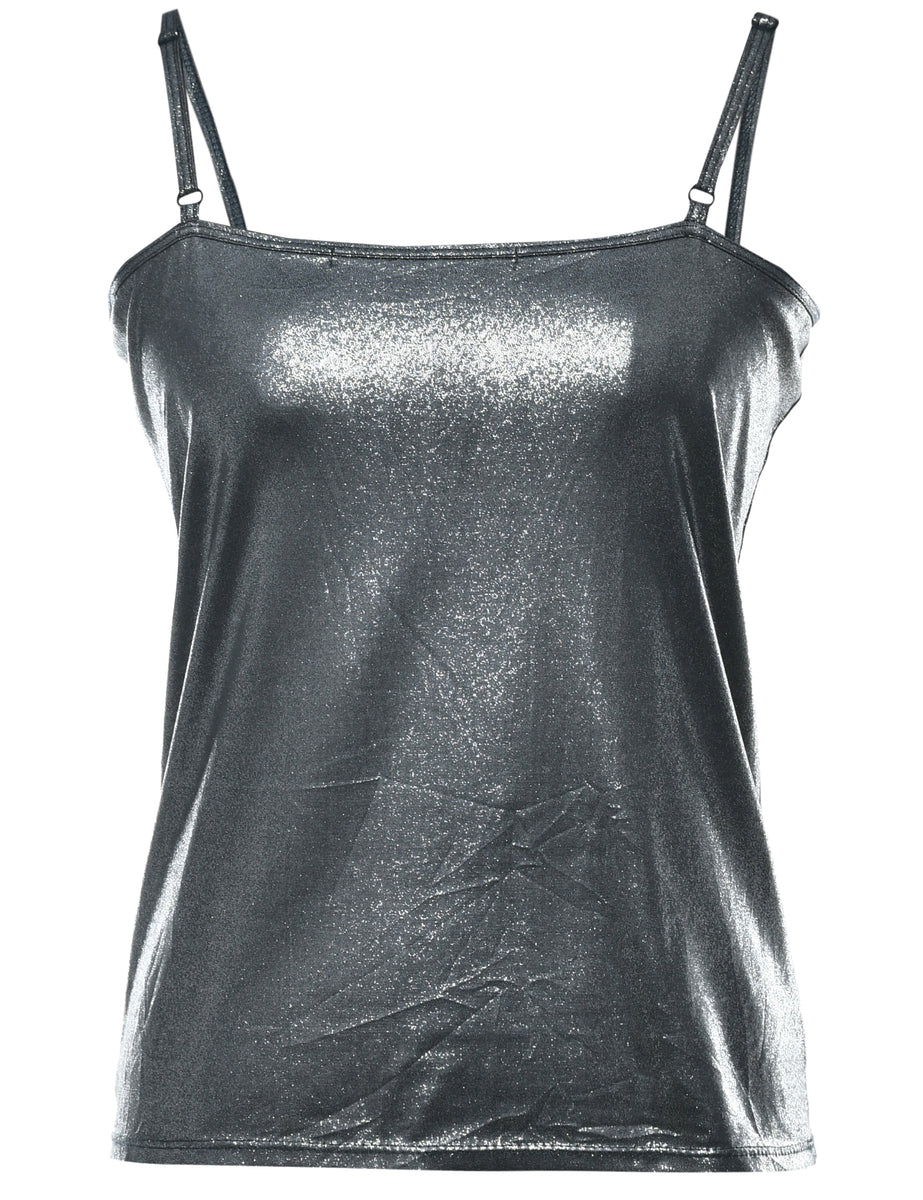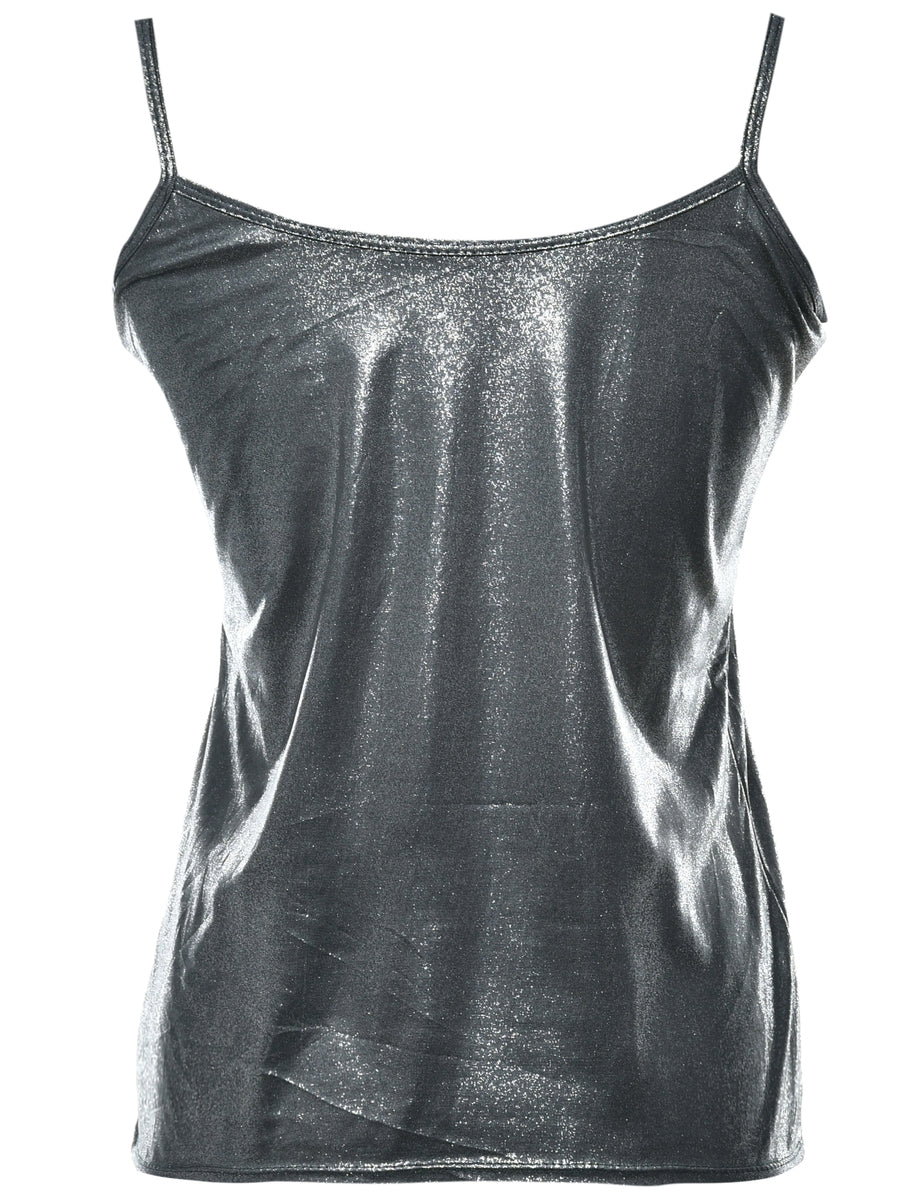 Evening top comes in dark grey with a round neck and adjustable straps.