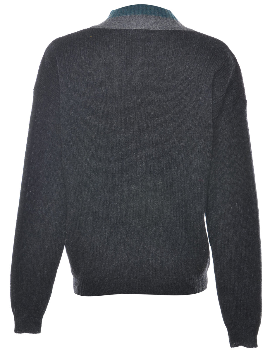 Vintage Dark Grey Wool Jumper - M