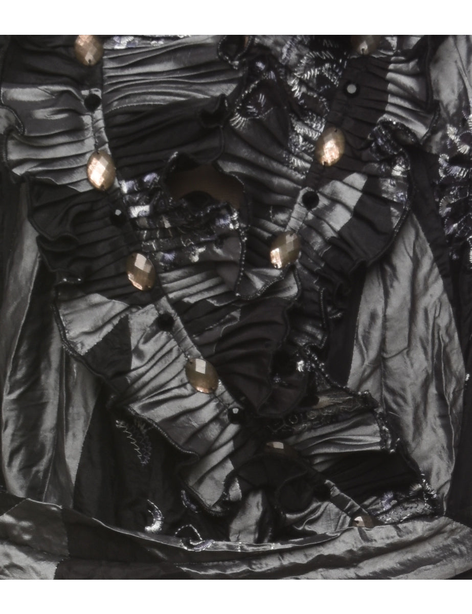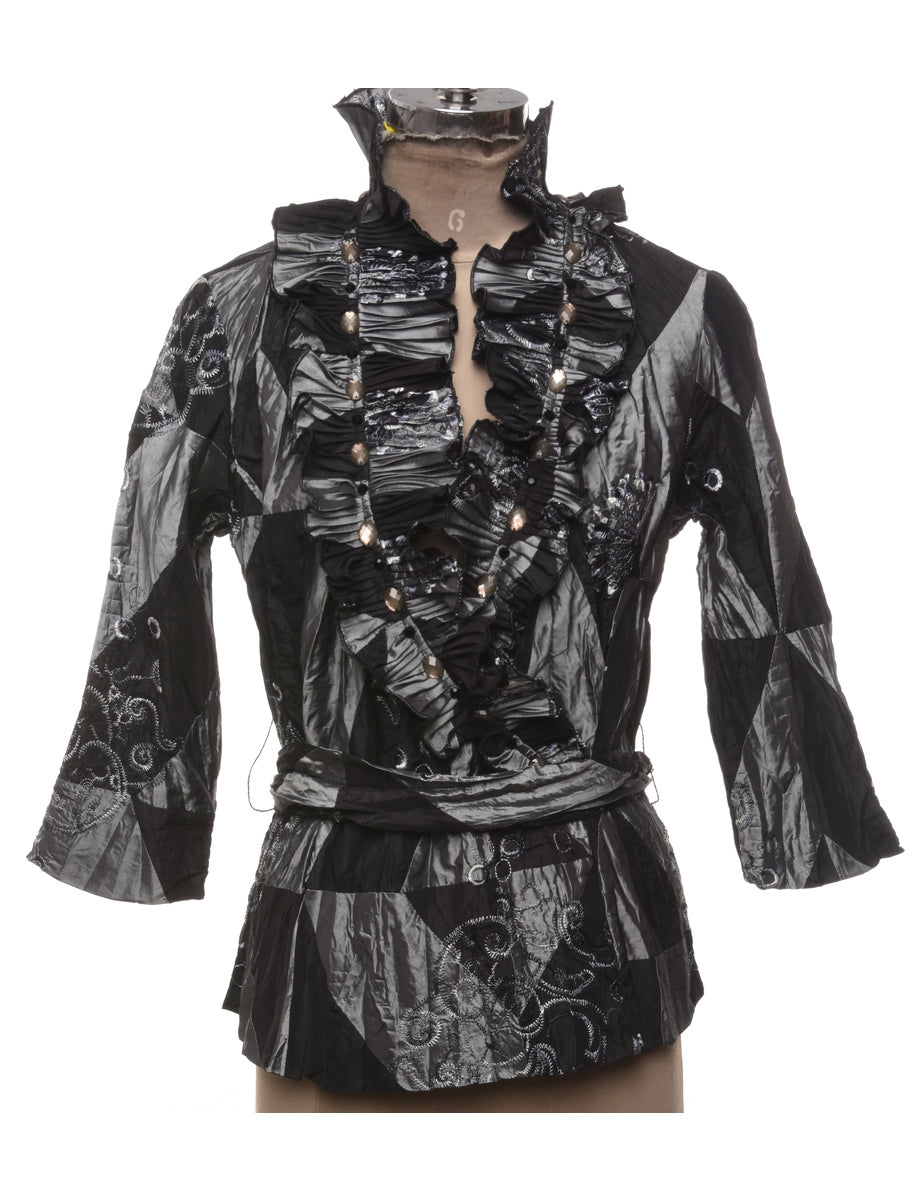 Embroidered Ruffled Evening Top - M
