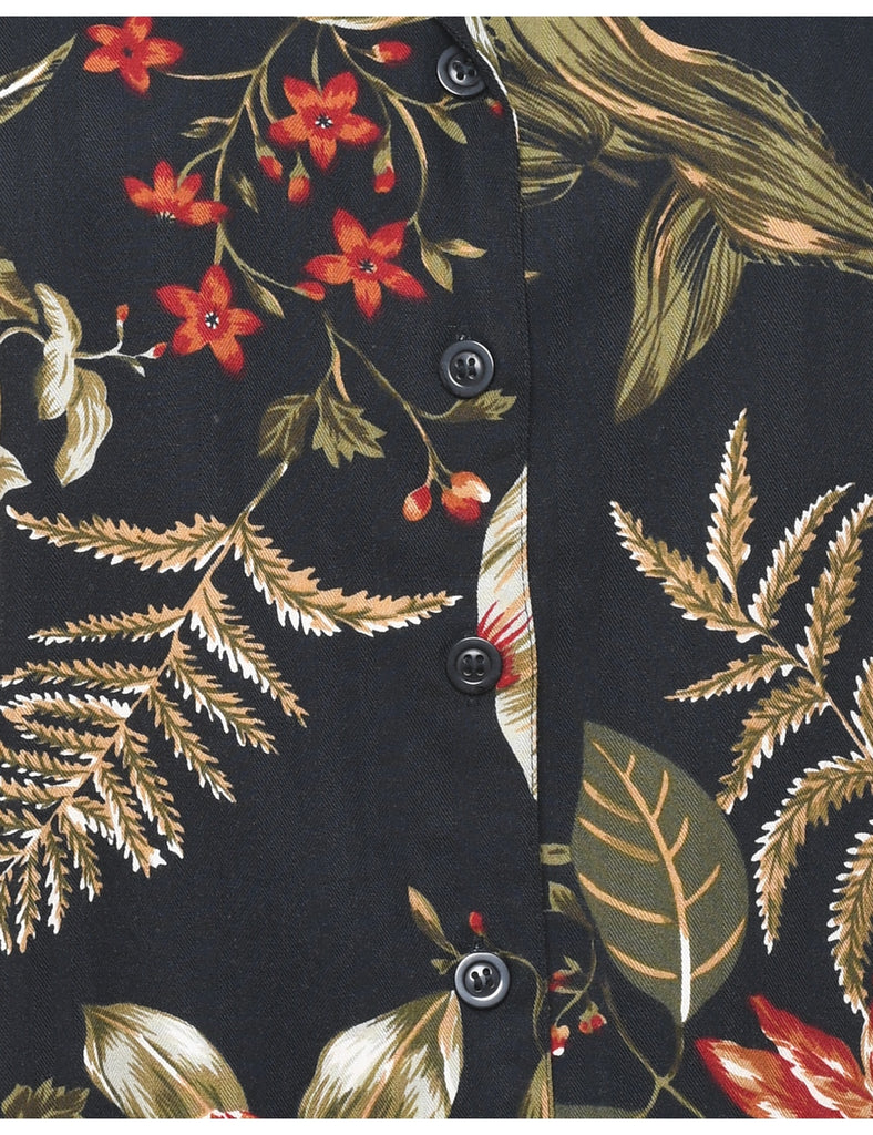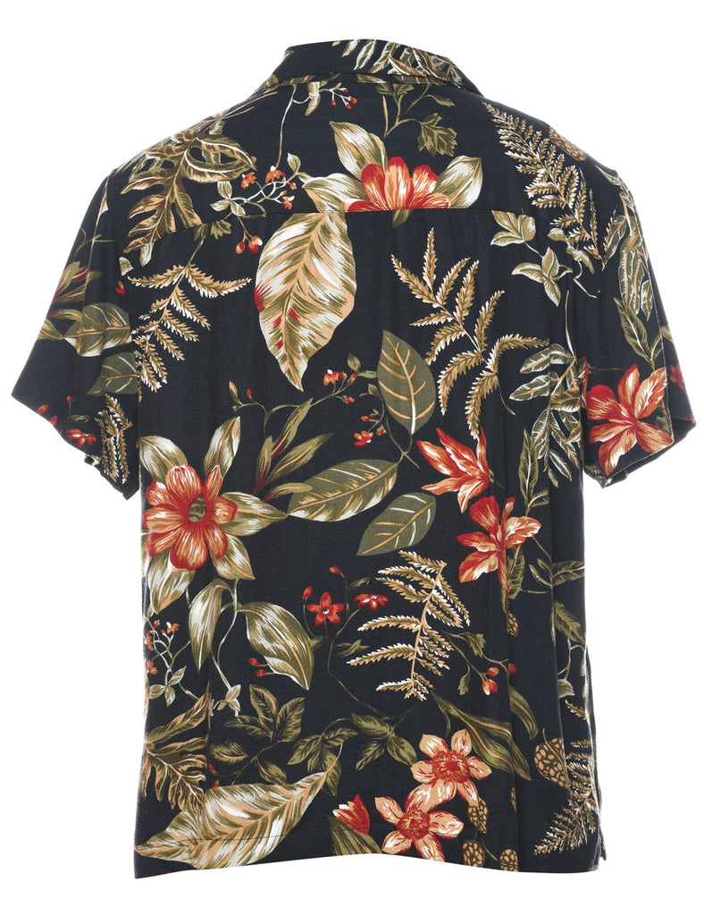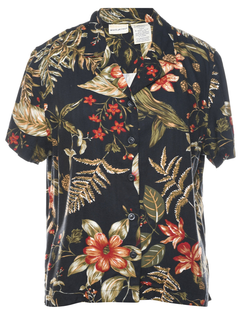 Floral hawaiian shirt in black with a revere front. From the brand White Stag.