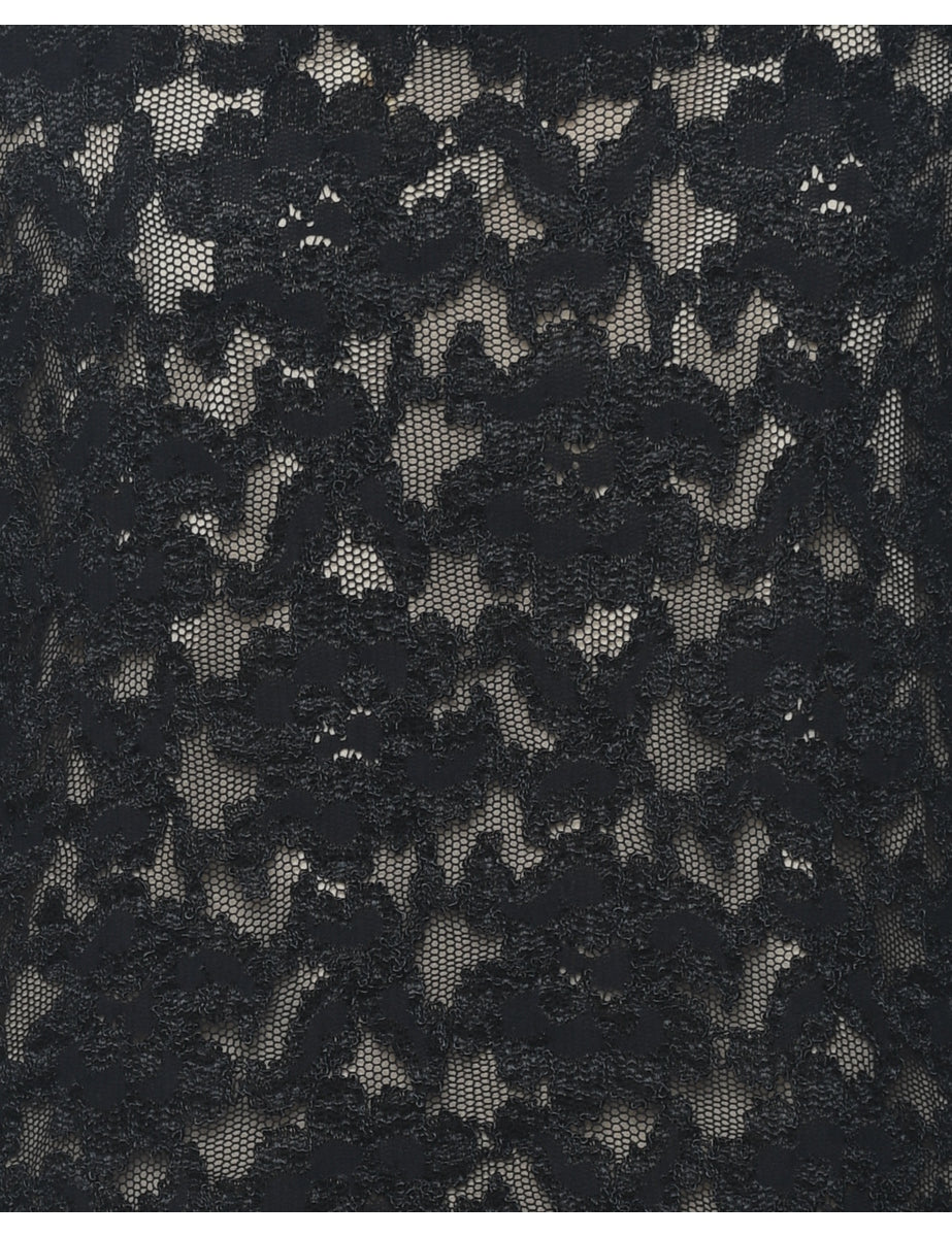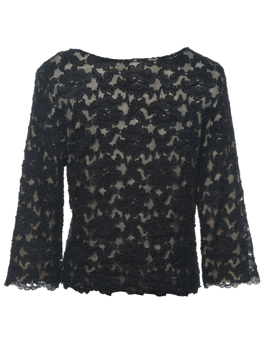 Floral top with lace comes in black with a round neck and full lining.