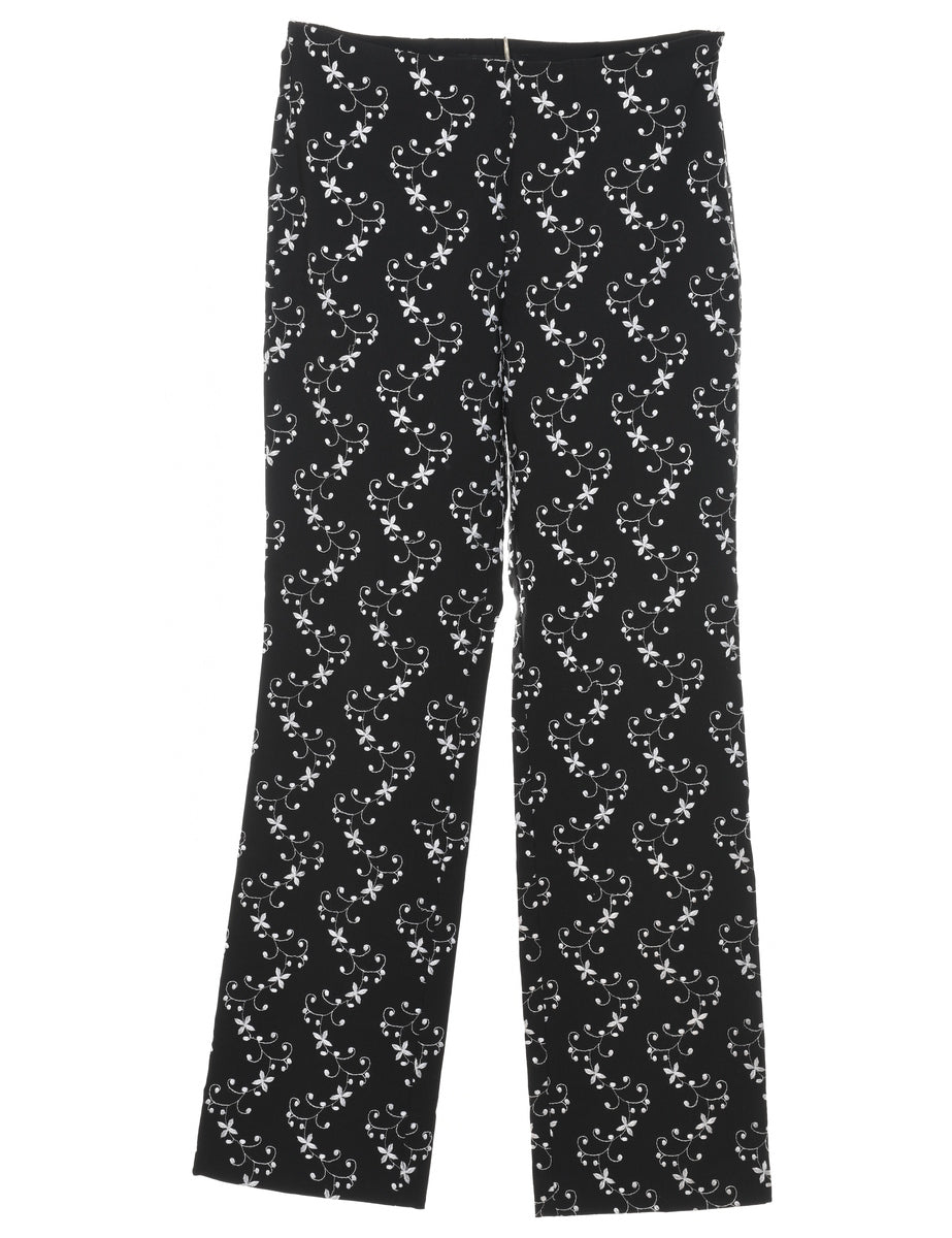 Vintage Floral Print Embroidered Trousers - W26 L30