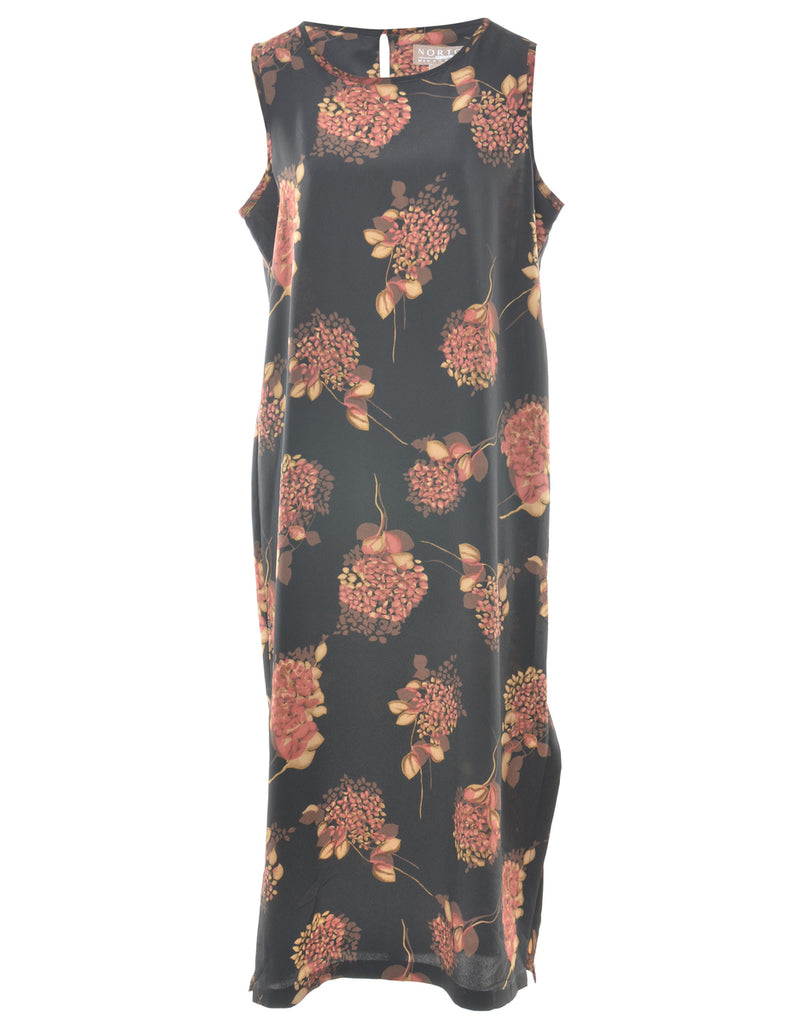 Floral print shift dress in black with back tie. From the brand Norton Mc Naughton.
