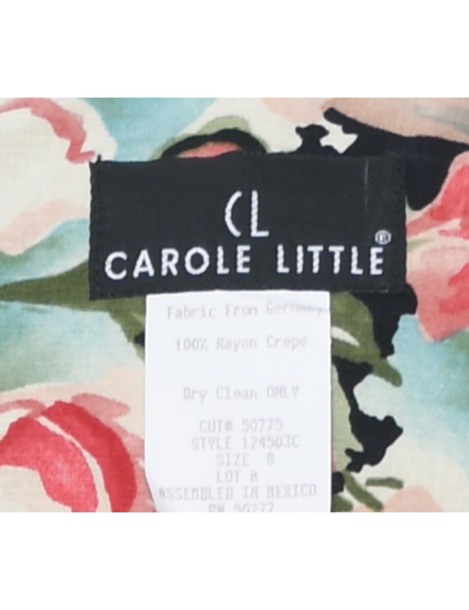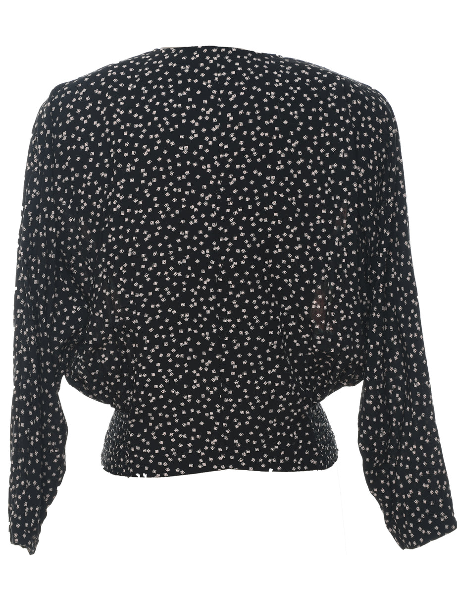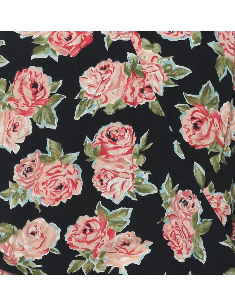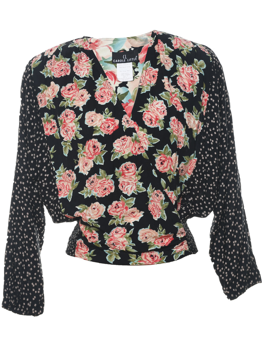 Floral printed top in black with a cross-over front and removable shoulder pads.