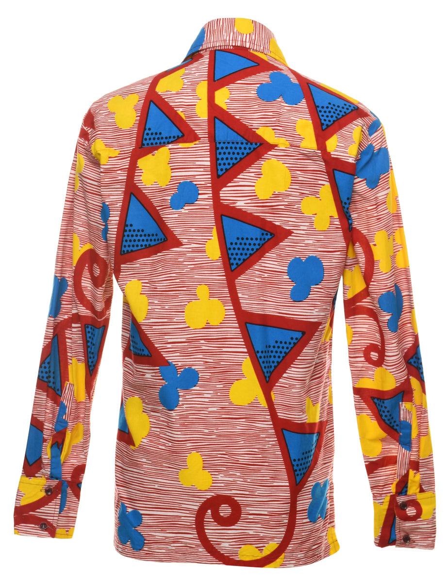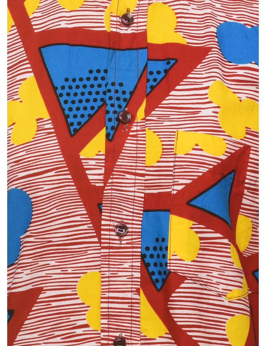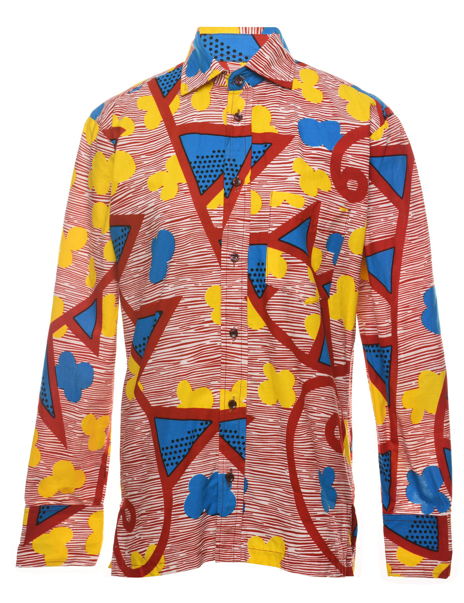 Vintage Geometric Pattern 1970s Style Multi-Colour Shirt - S