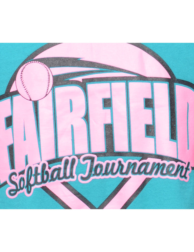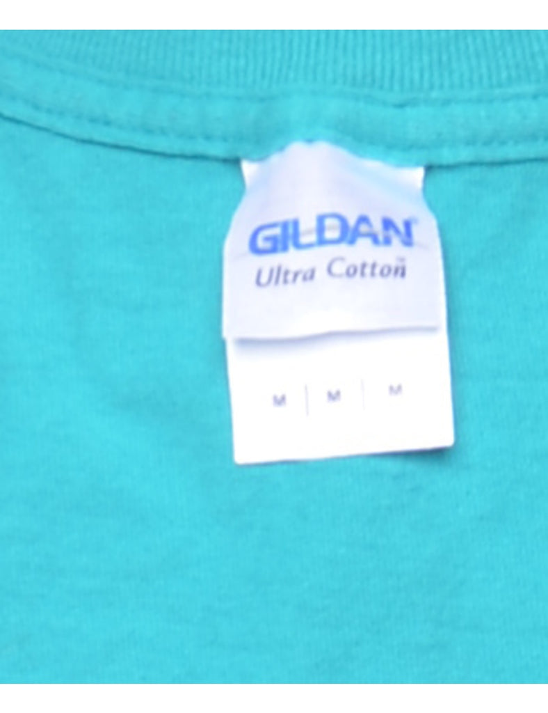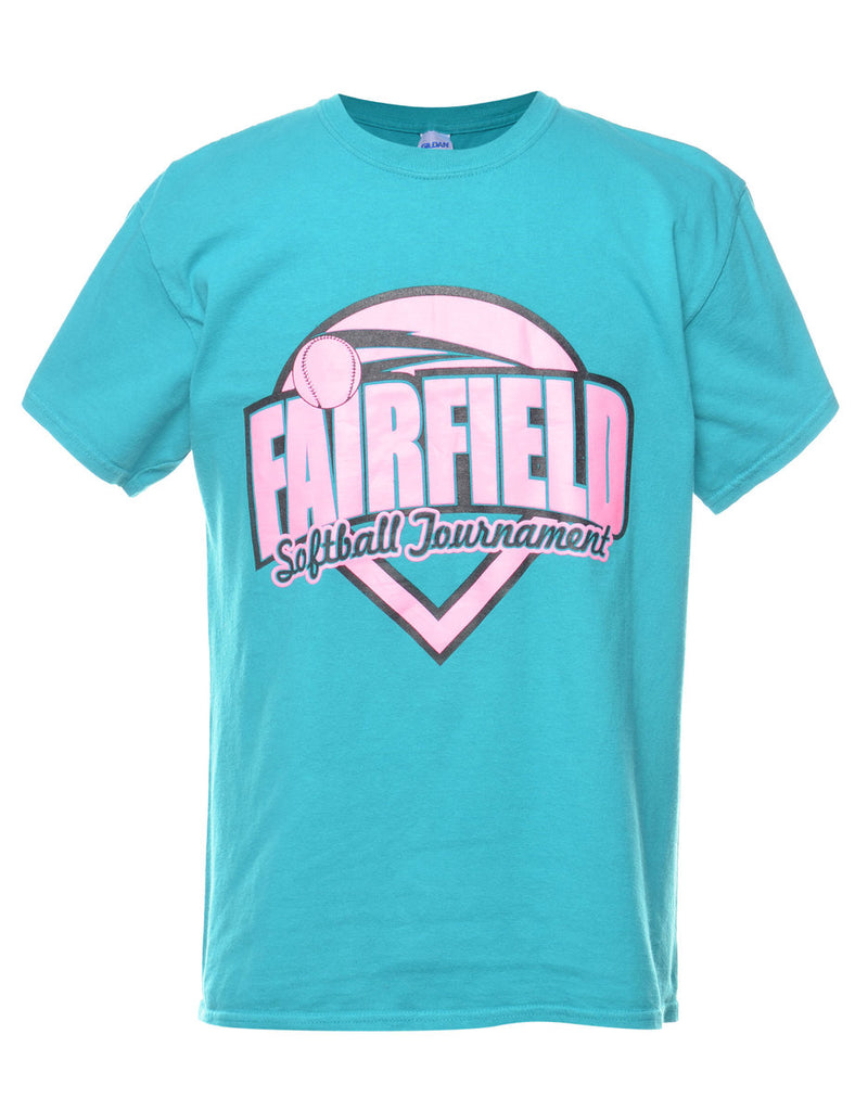 Gildan fairfield printed t-shirt comes in teal & pink.