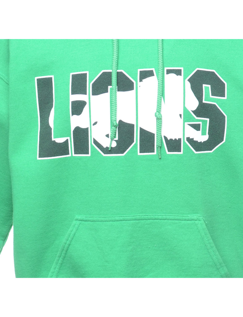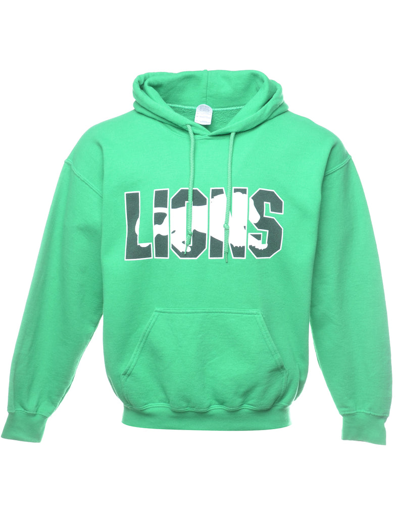 Gildan Lions printed sweatshirt in green with a hood and ribbed cuffs and waistband.