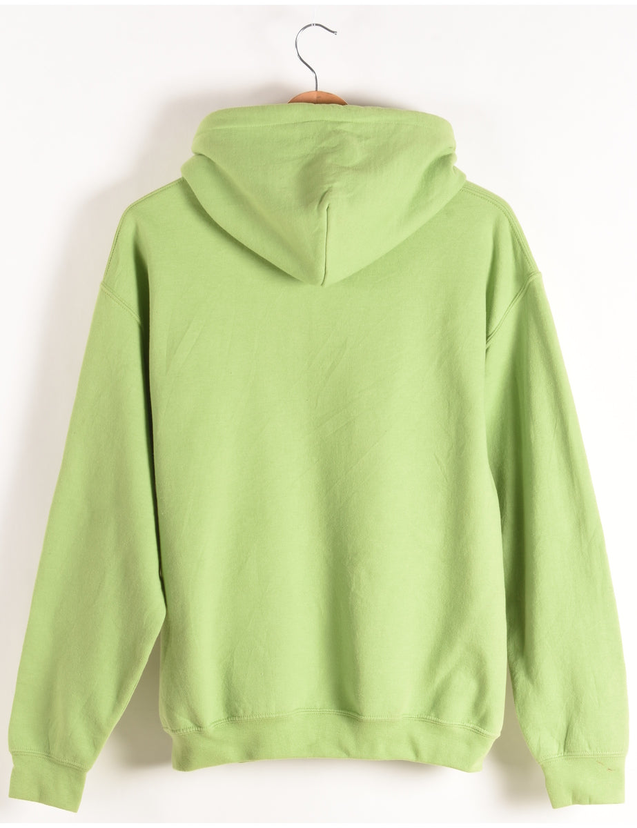 Gildan long beach island printed hoodie comes in lime green with a drawstring neck and one pocket.