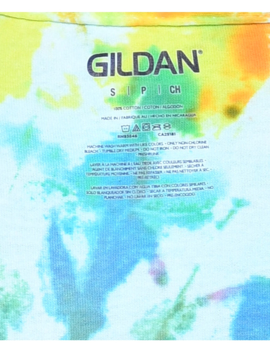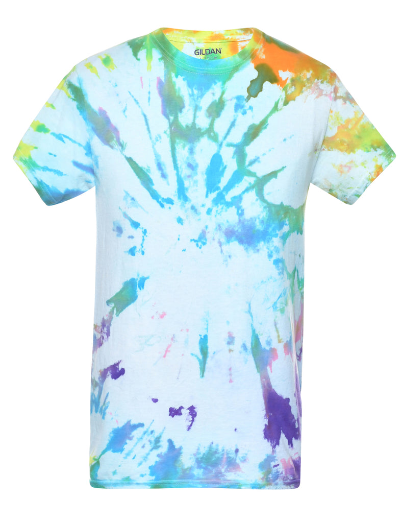 Gildan tie dyed t-shirt. Comes in multi-colour.