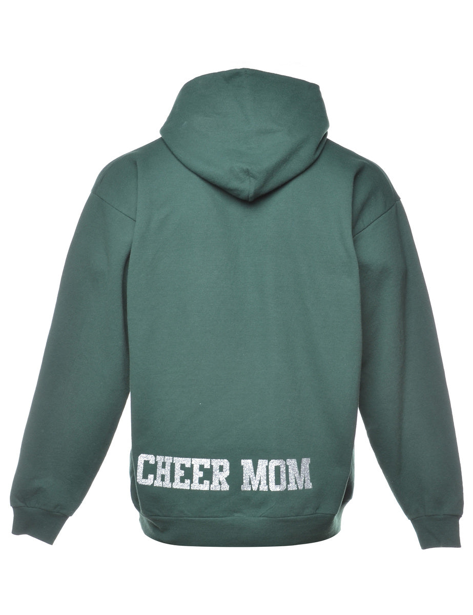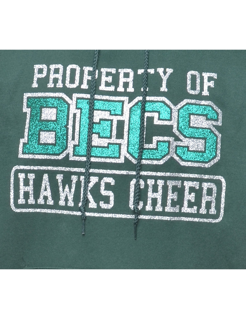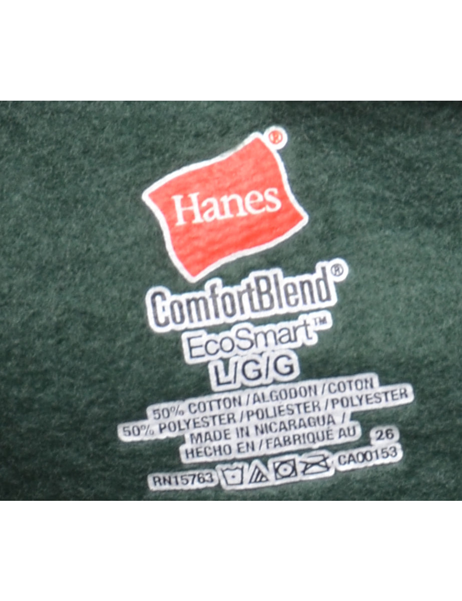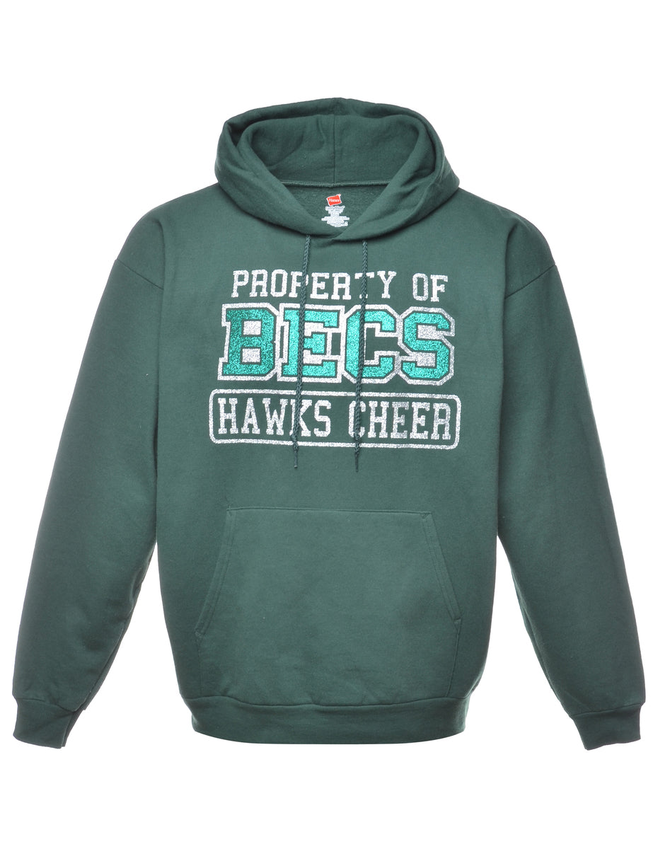 Hanes becs printed hoodie in dark green with a drawstring neck and one pocket.