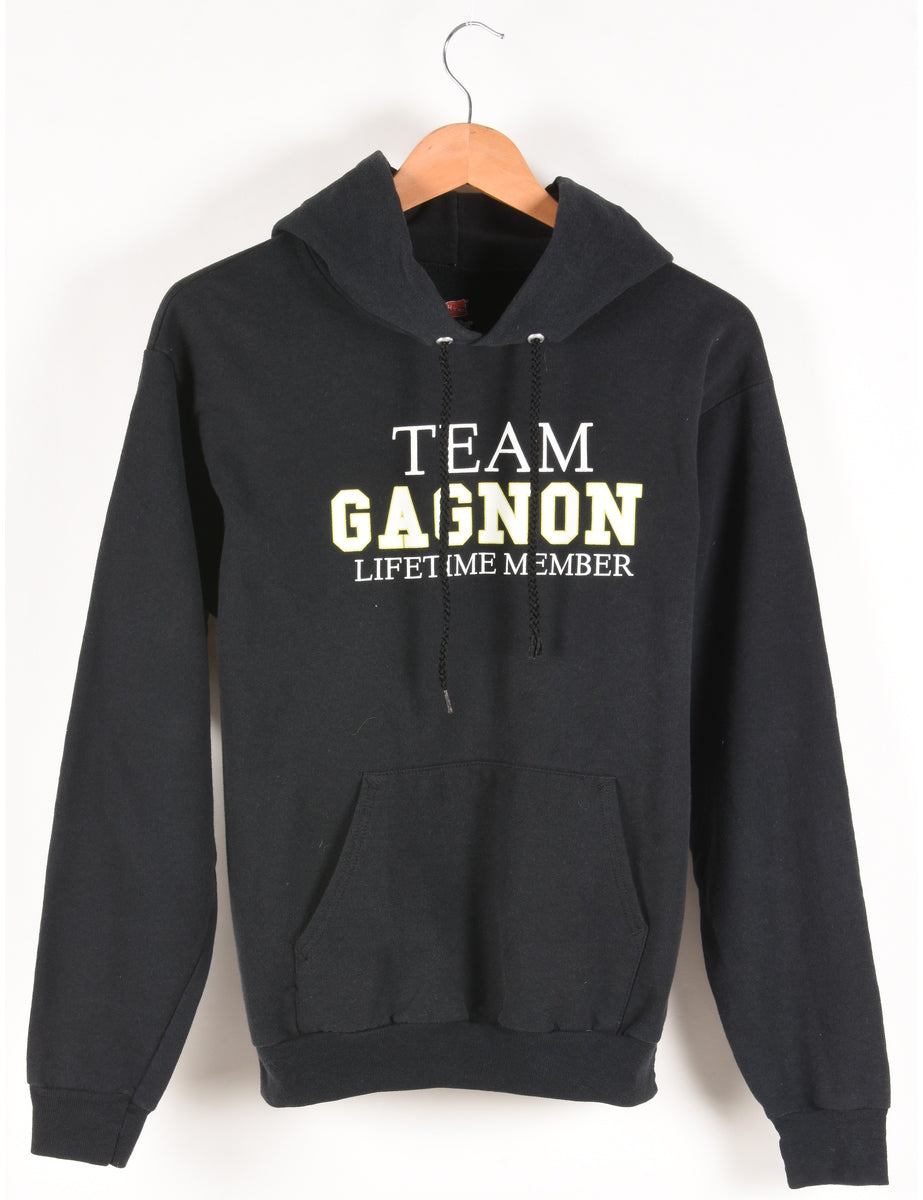 Hanes team gagnon printed hoodie in black with a drawstring neck and one pocket.