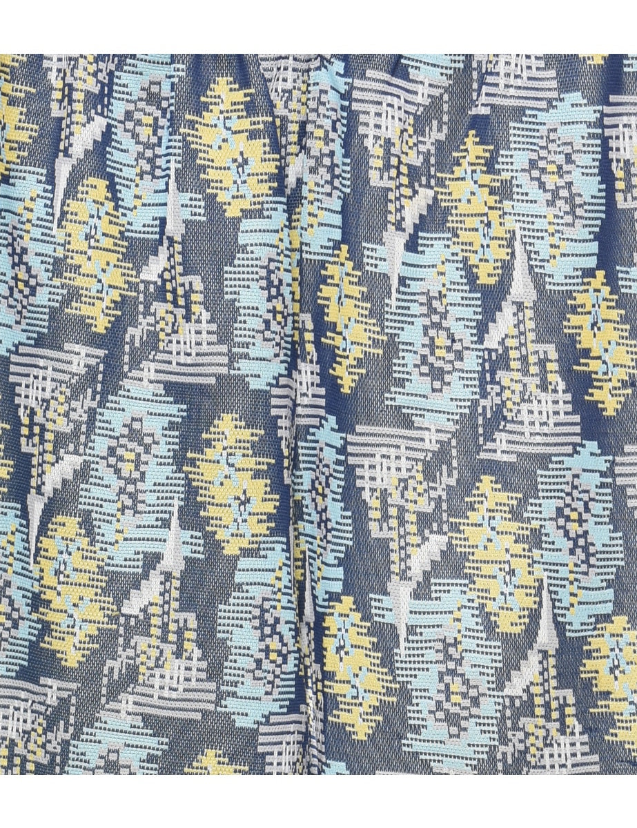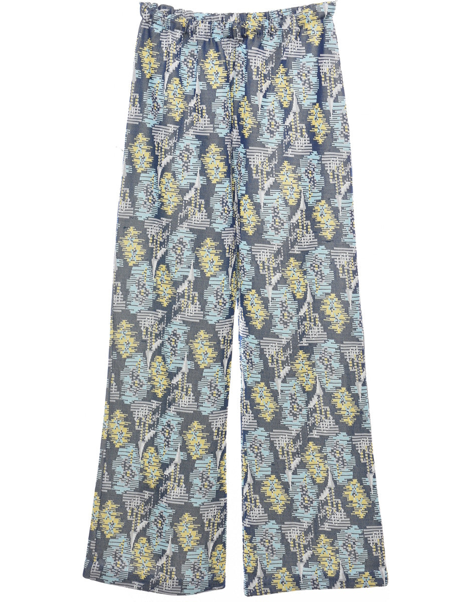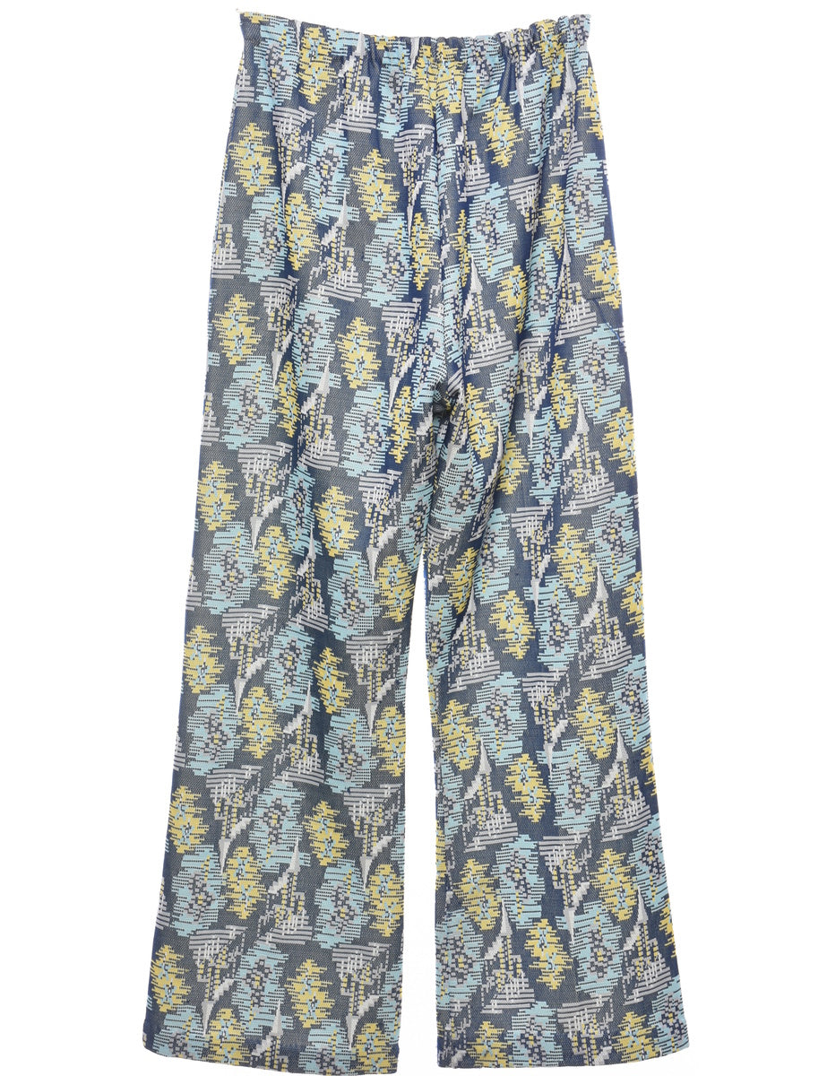Vintage High Waist Navy & Yellow 1970s Patterned Trousers - W25 L28