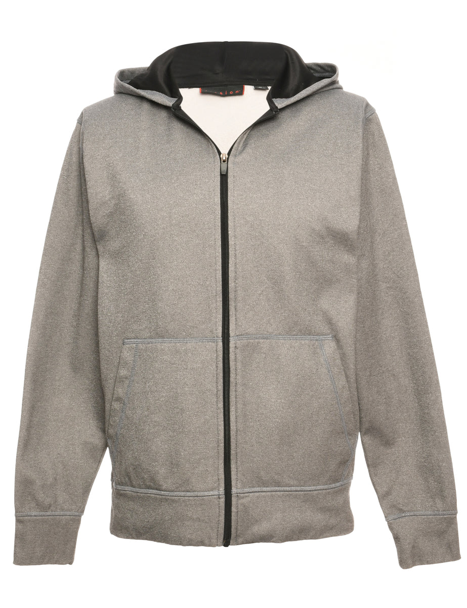 Hooded track top in grey with two pockets.