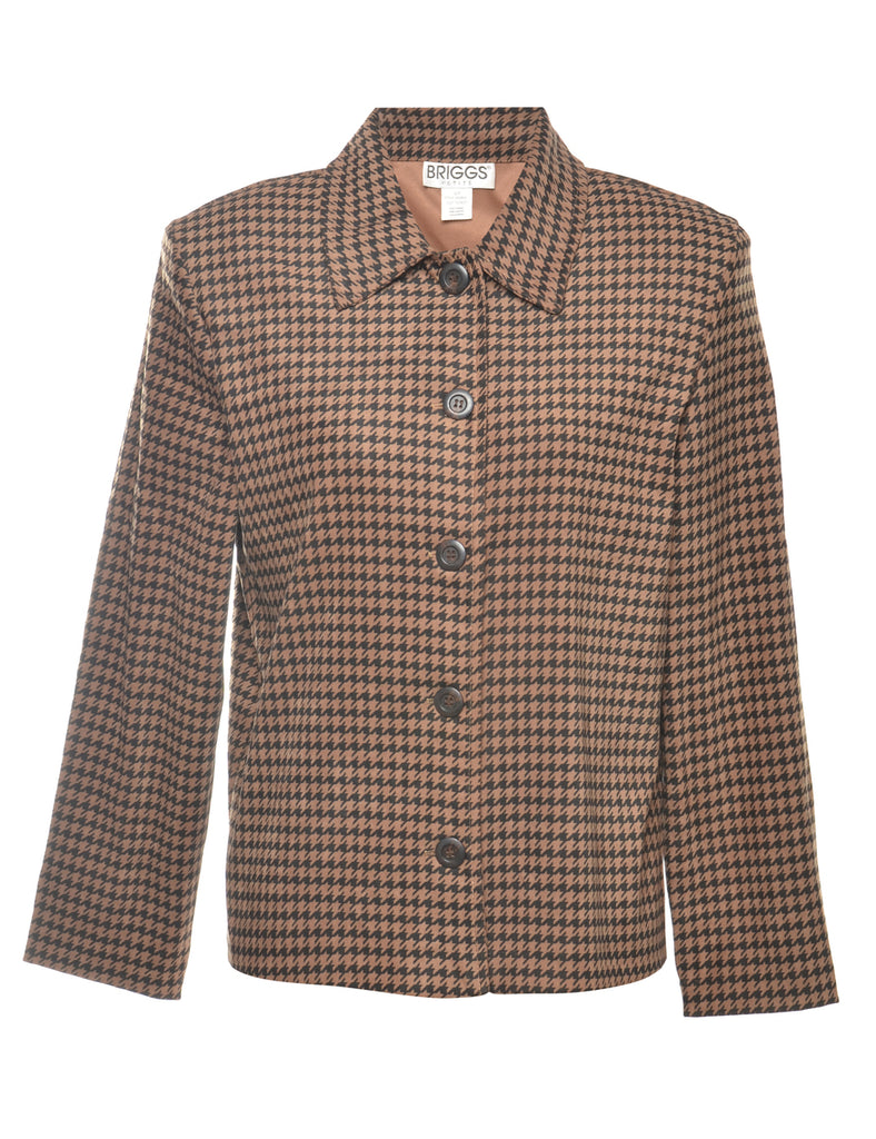 Petites houndstooth jacket comes in brown with removable shoulder pads.