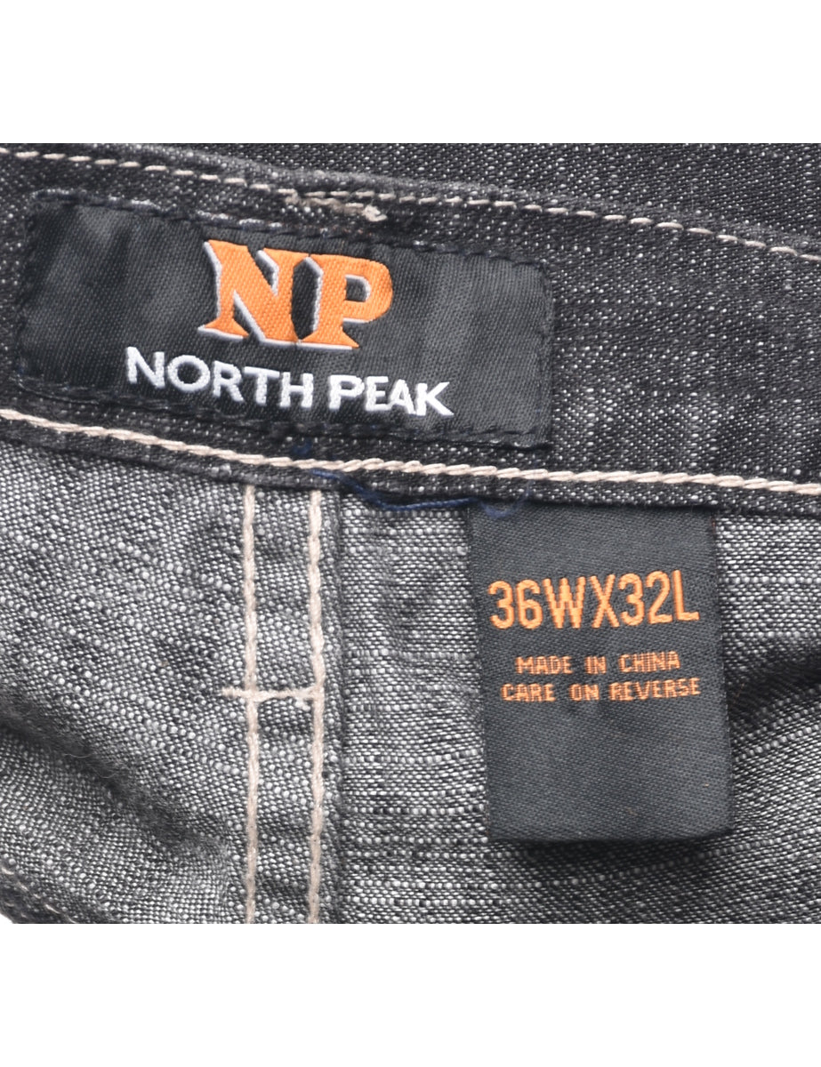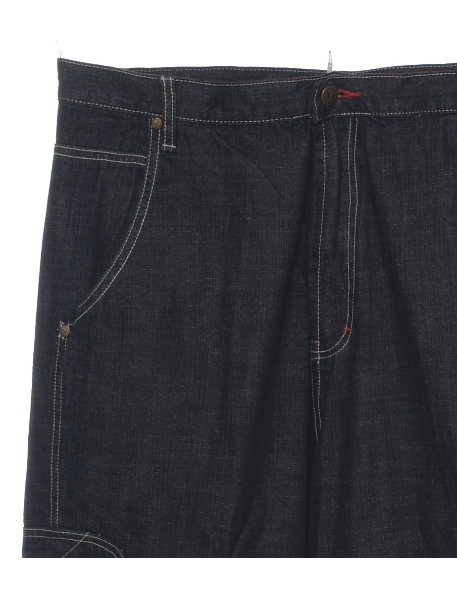 Boyfriend fit indigo straight fit jeans with multiple pockets.