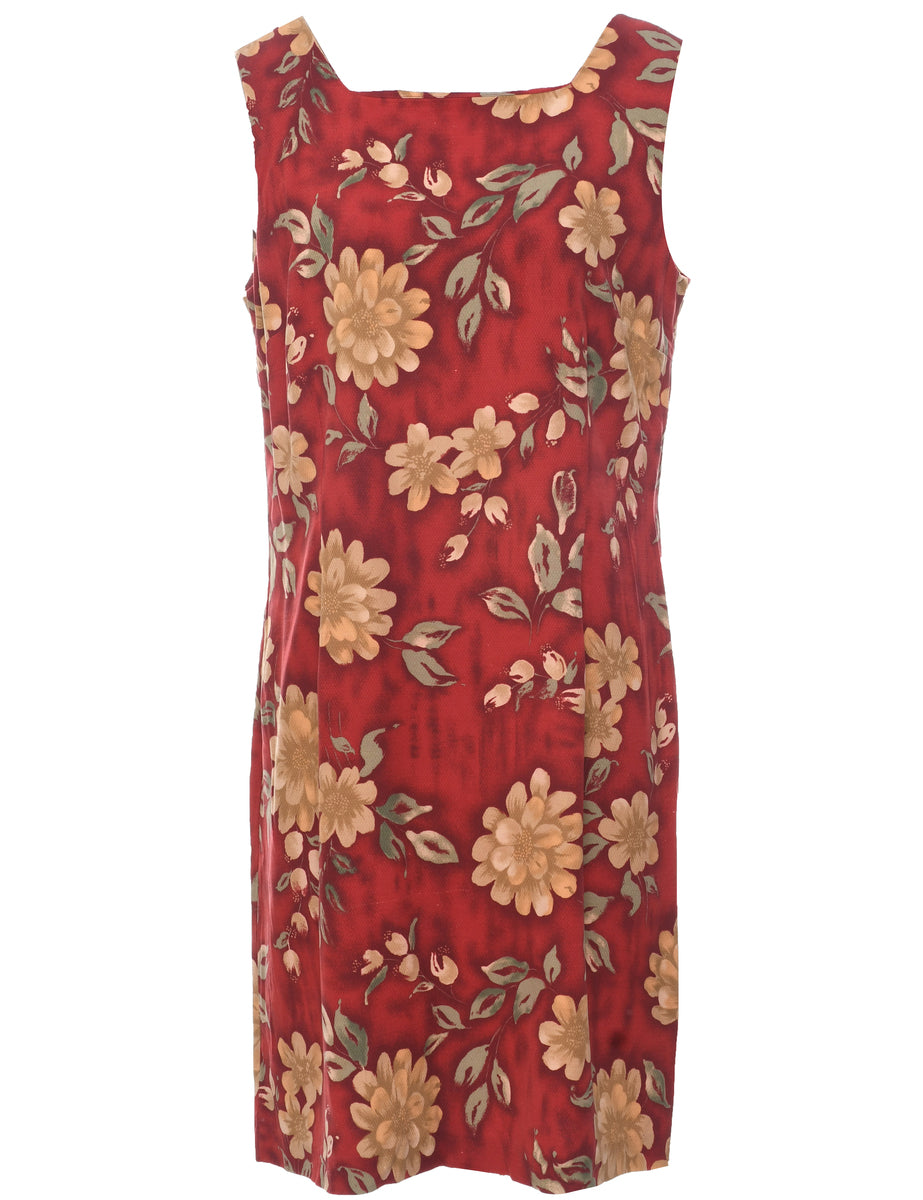 Izod floral print dress in maroon with square neck.