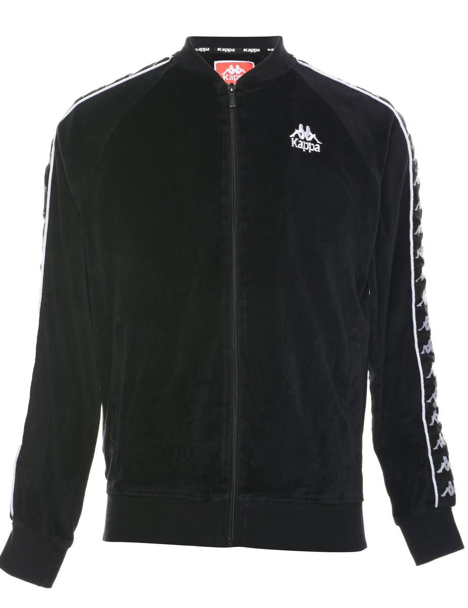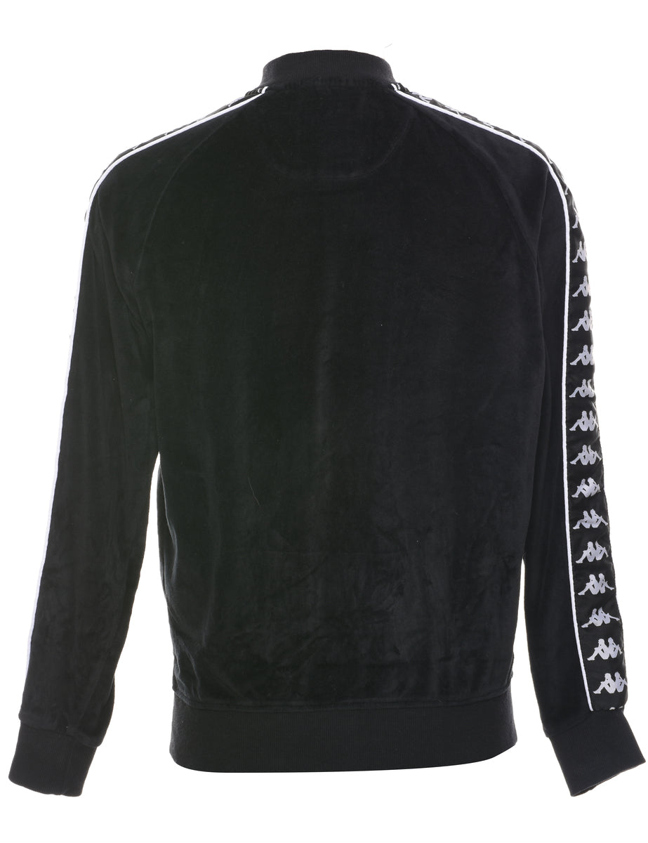 Kappa velvet track top in black with two pockets and raglan sleeves.