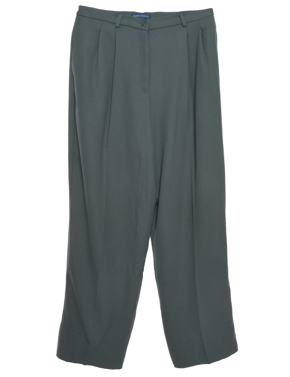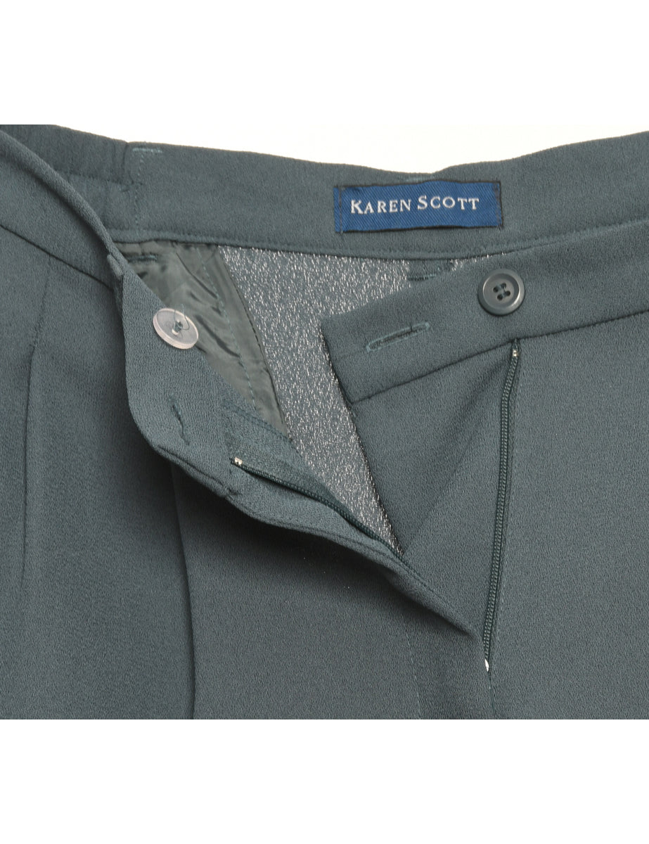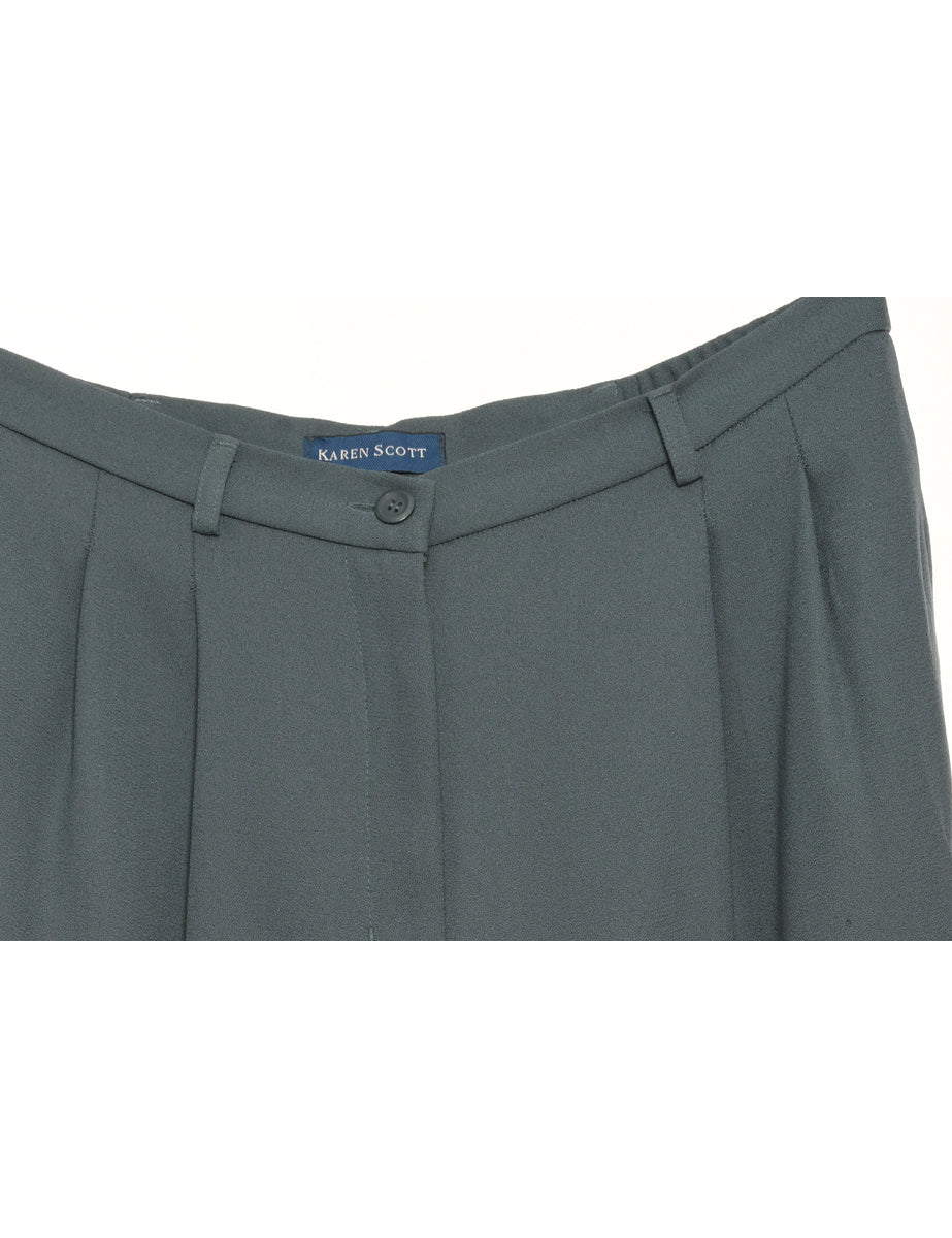 Karen Scott Elasticated Waist Grey Pleated Trousers - W32 L28
