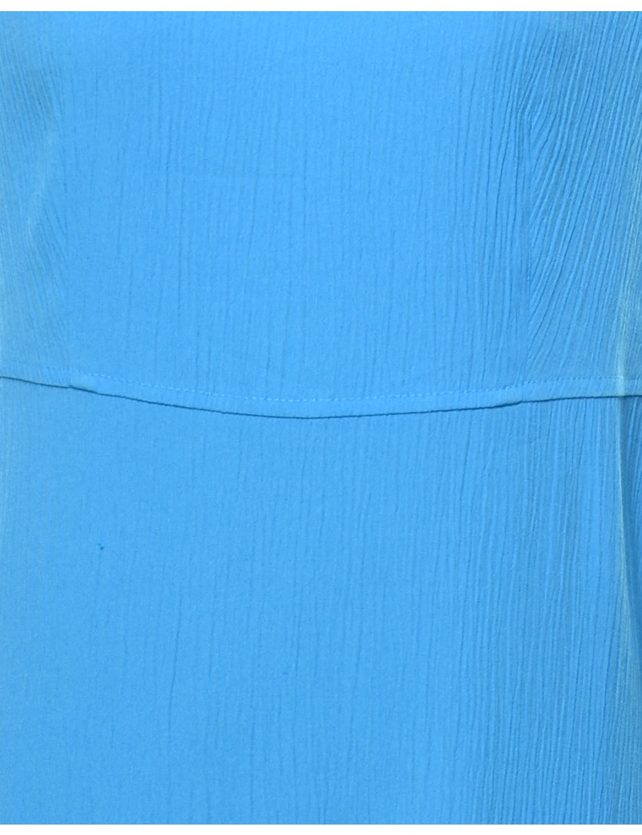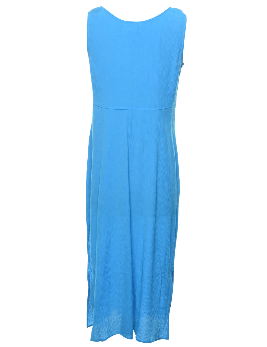 Sleevelesss dress in aqua blue with side slit. From the brand Karin Stevens.