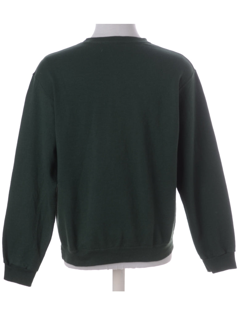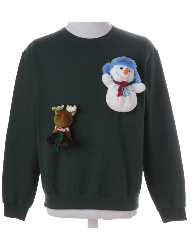 Beyond Retro Label unique novelty christmas sweatshirt in dark green with a soft toy on the front.